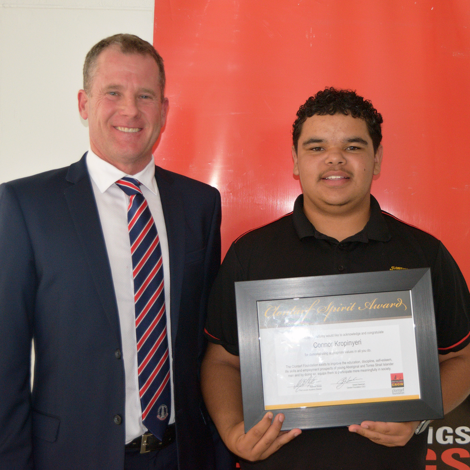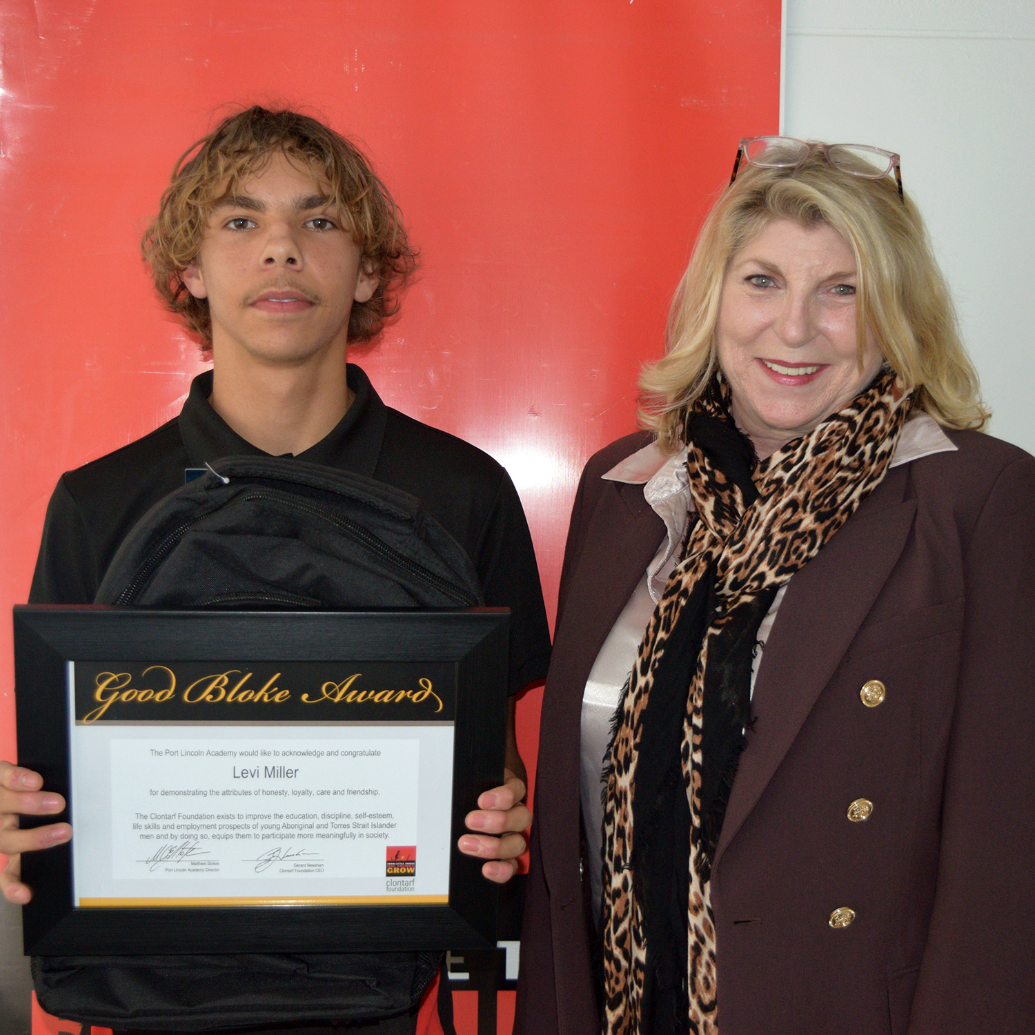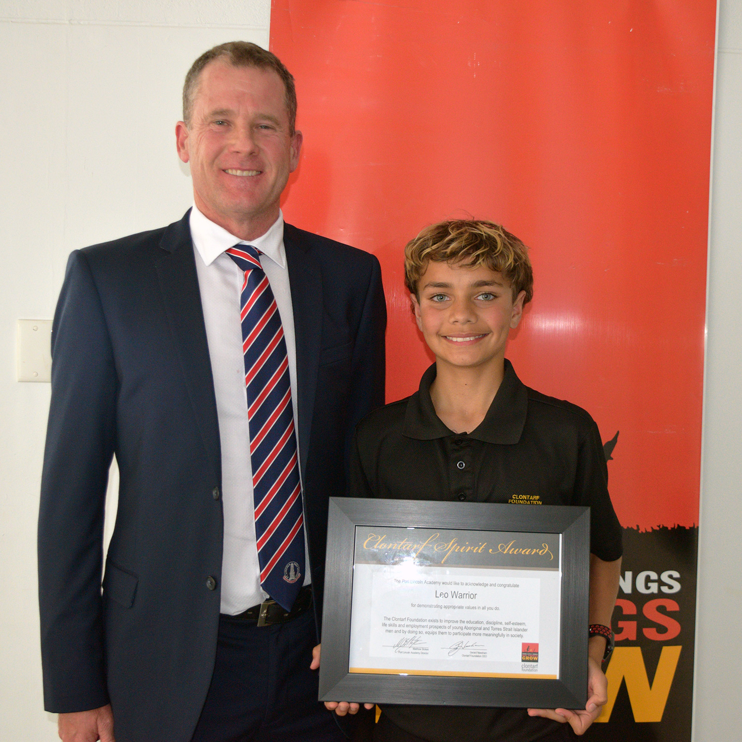 Presented by (and pictured here with) Clontarf Alumni Mr. Callum Buller