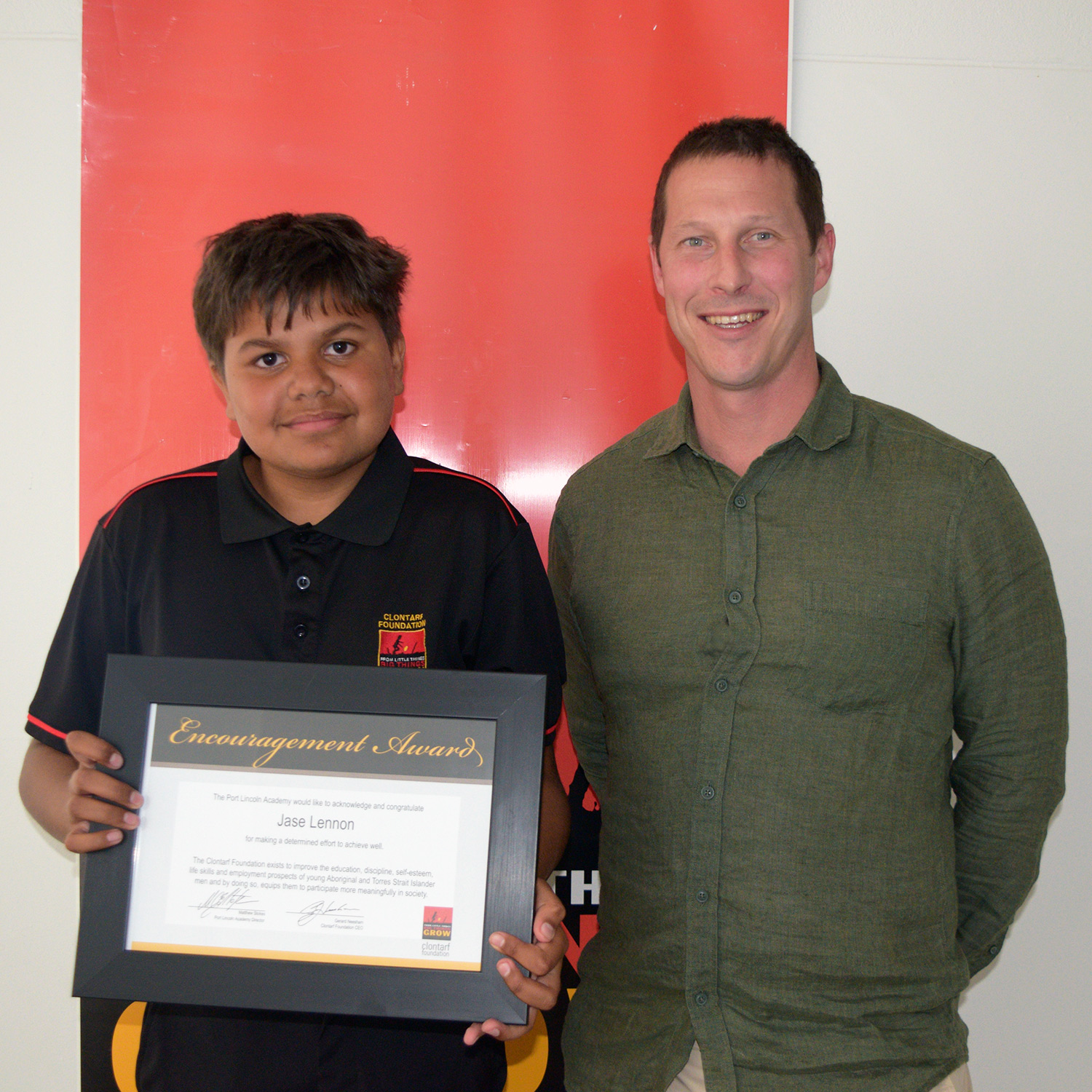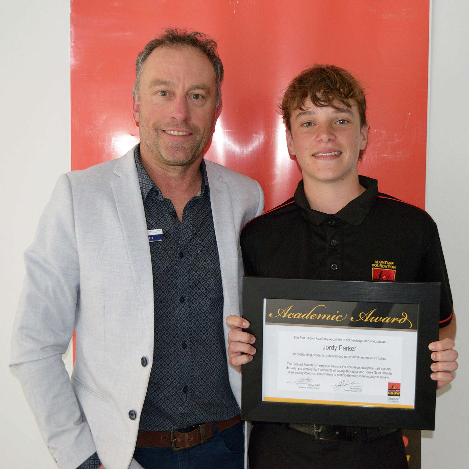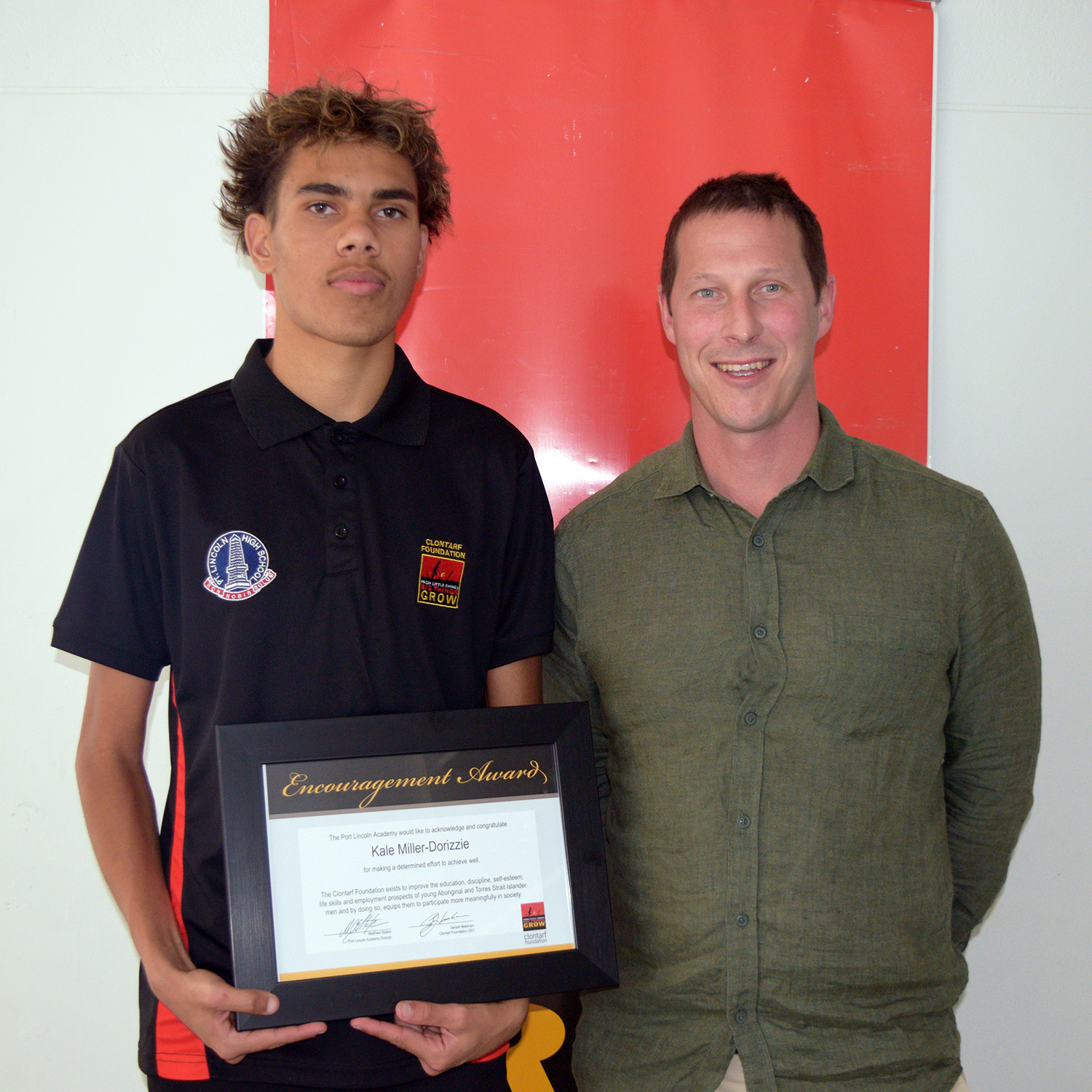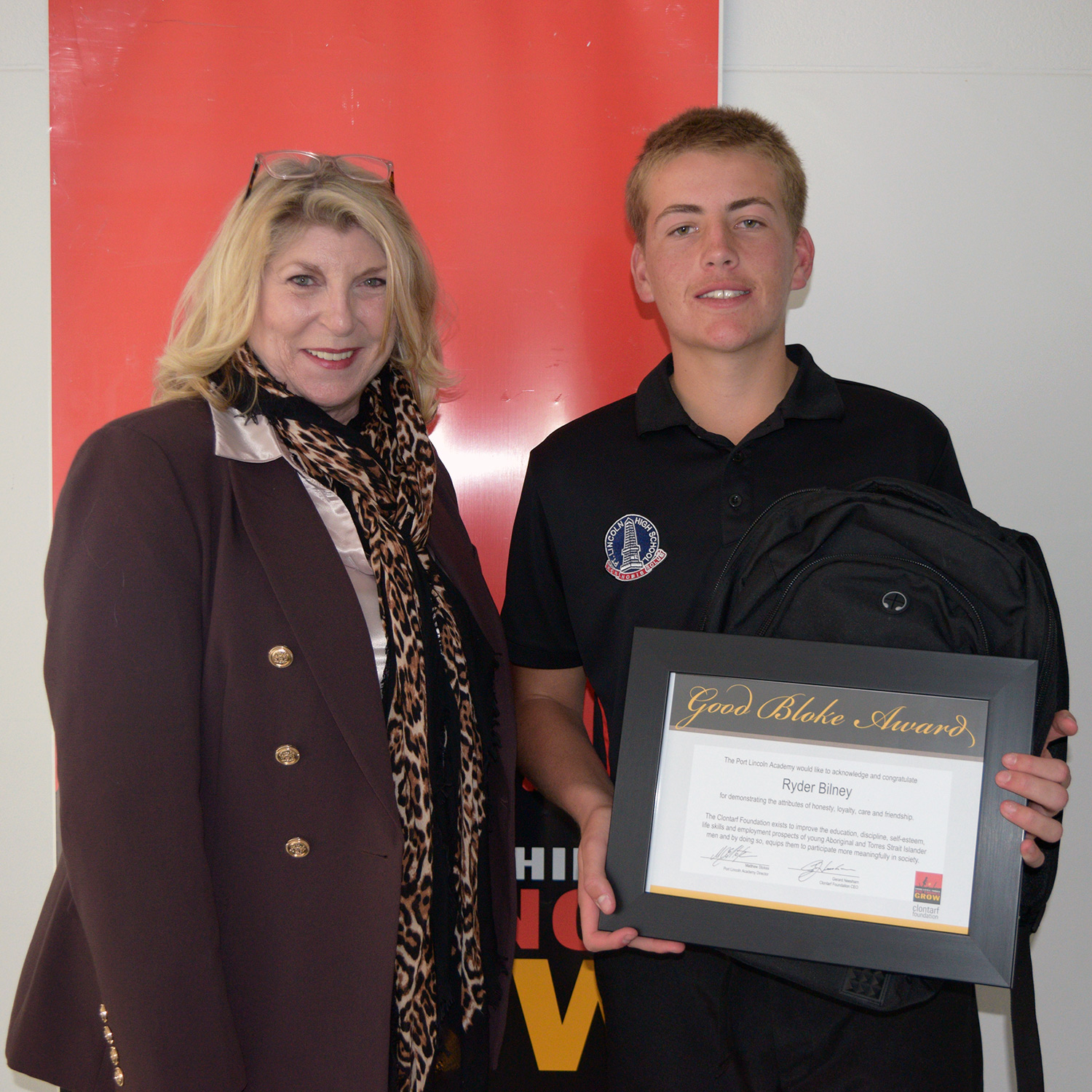Presented by (and pictured here with) Clontarf Alumni Mr. Callum Buller