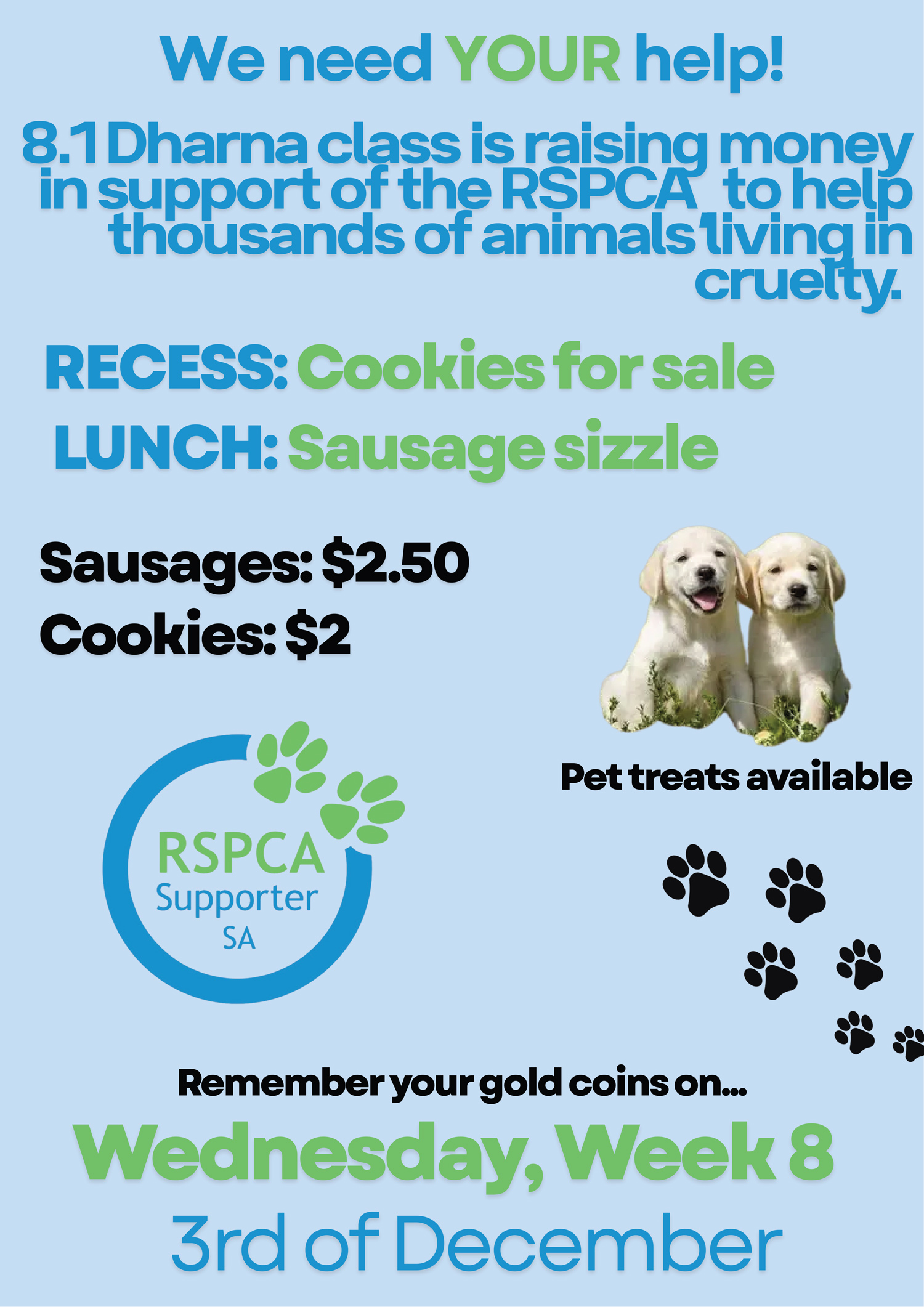 In order to raise funds in support of the RSPCA, the students baked and decorated cookies to sell. After a morning barbecue-cooking lesson with Mr. Thomas and his Crew, they also cooked a sausage sizzle at lunchtime. The event was very successful, and the students were proud to raise $180 which will be donated to support the work of the RSPCA.