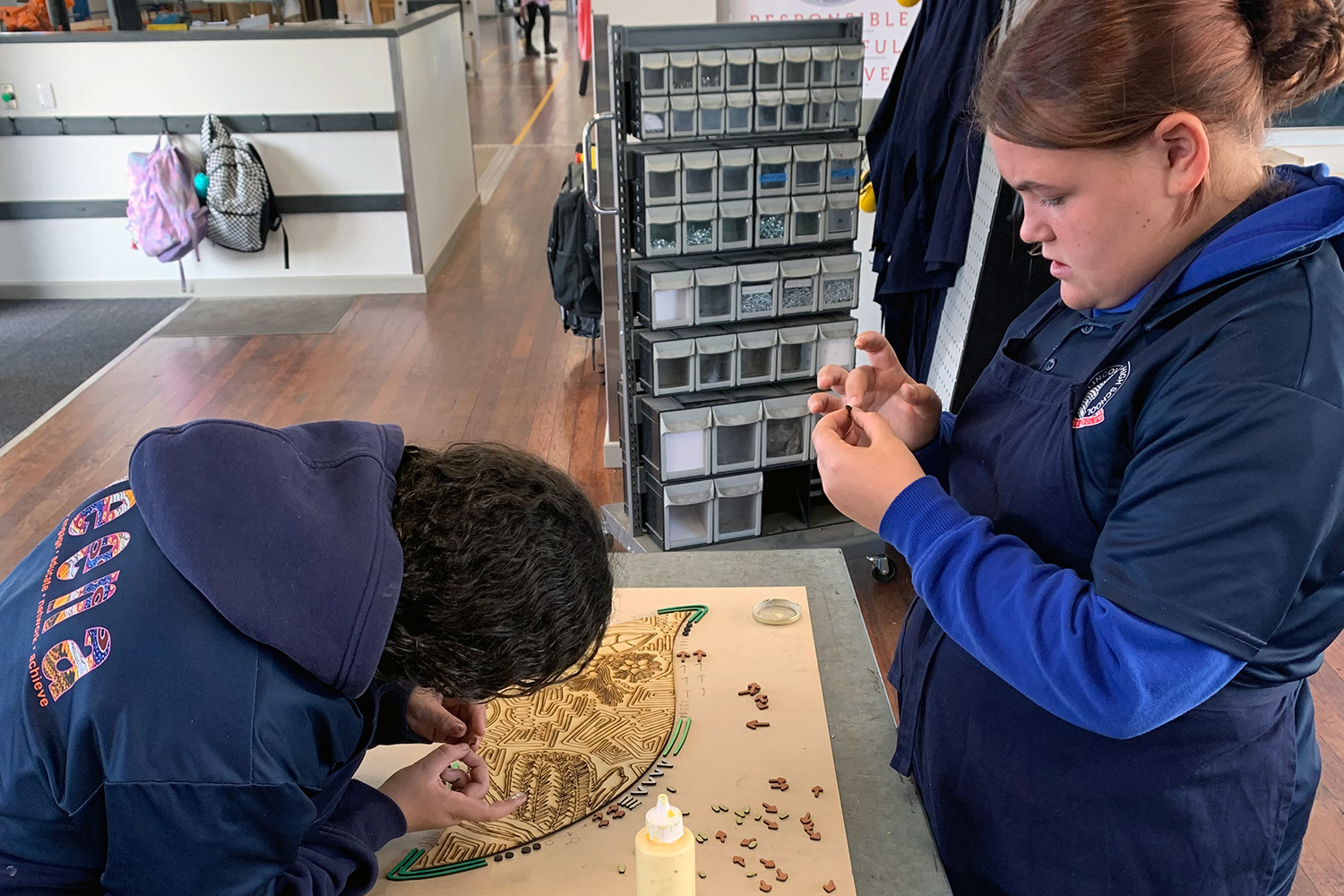 Two of our Year 8 Tailored Learning students – Abby-Lee Leviston (left) and Ebony Dodd (right) – have been working hard to produce a special artwork for National Reconciliation Week (which commences tomorrow across the nation).