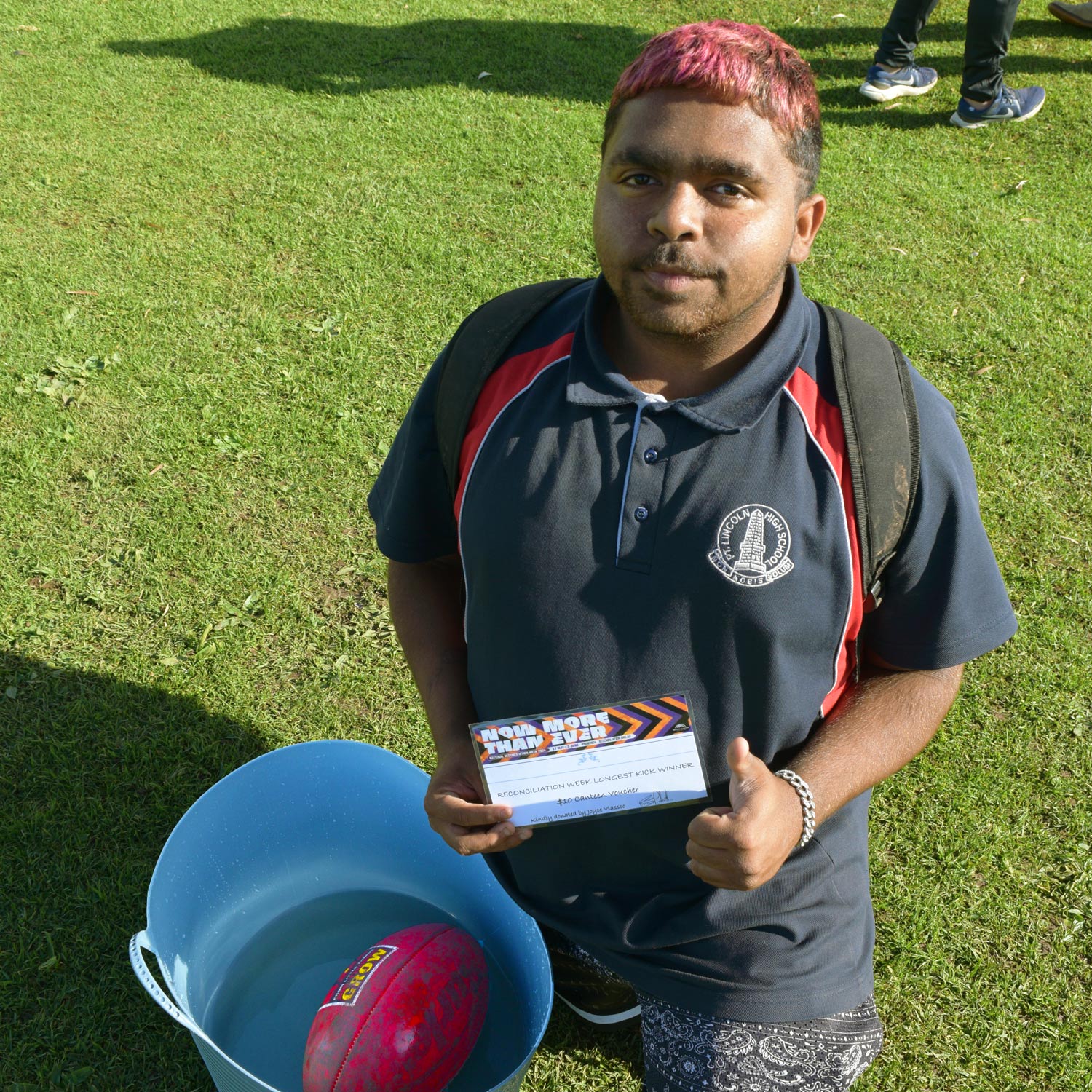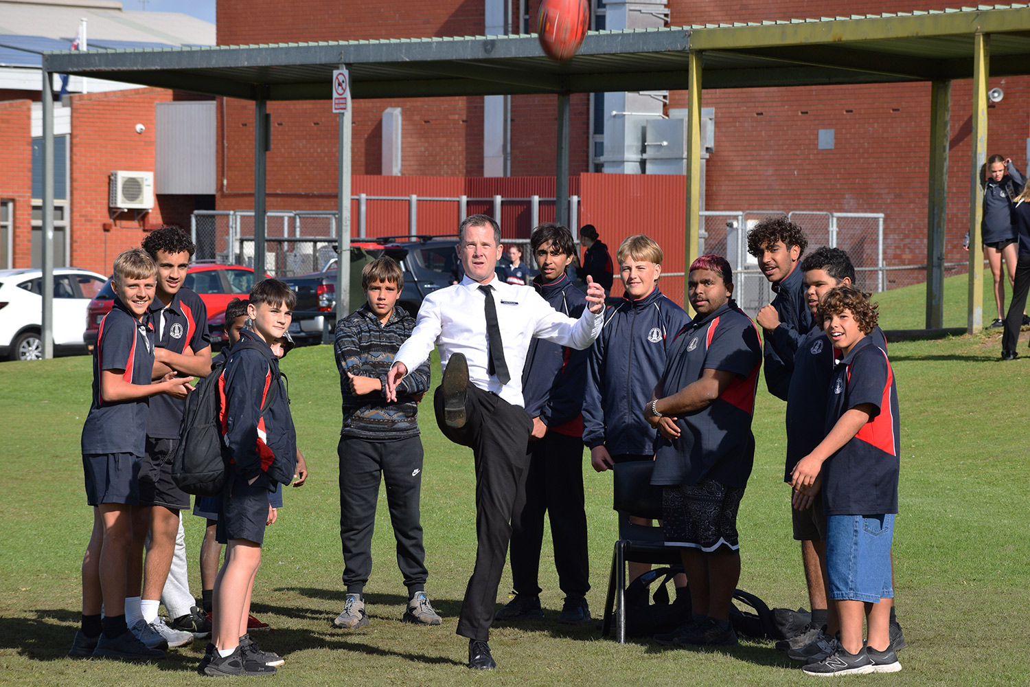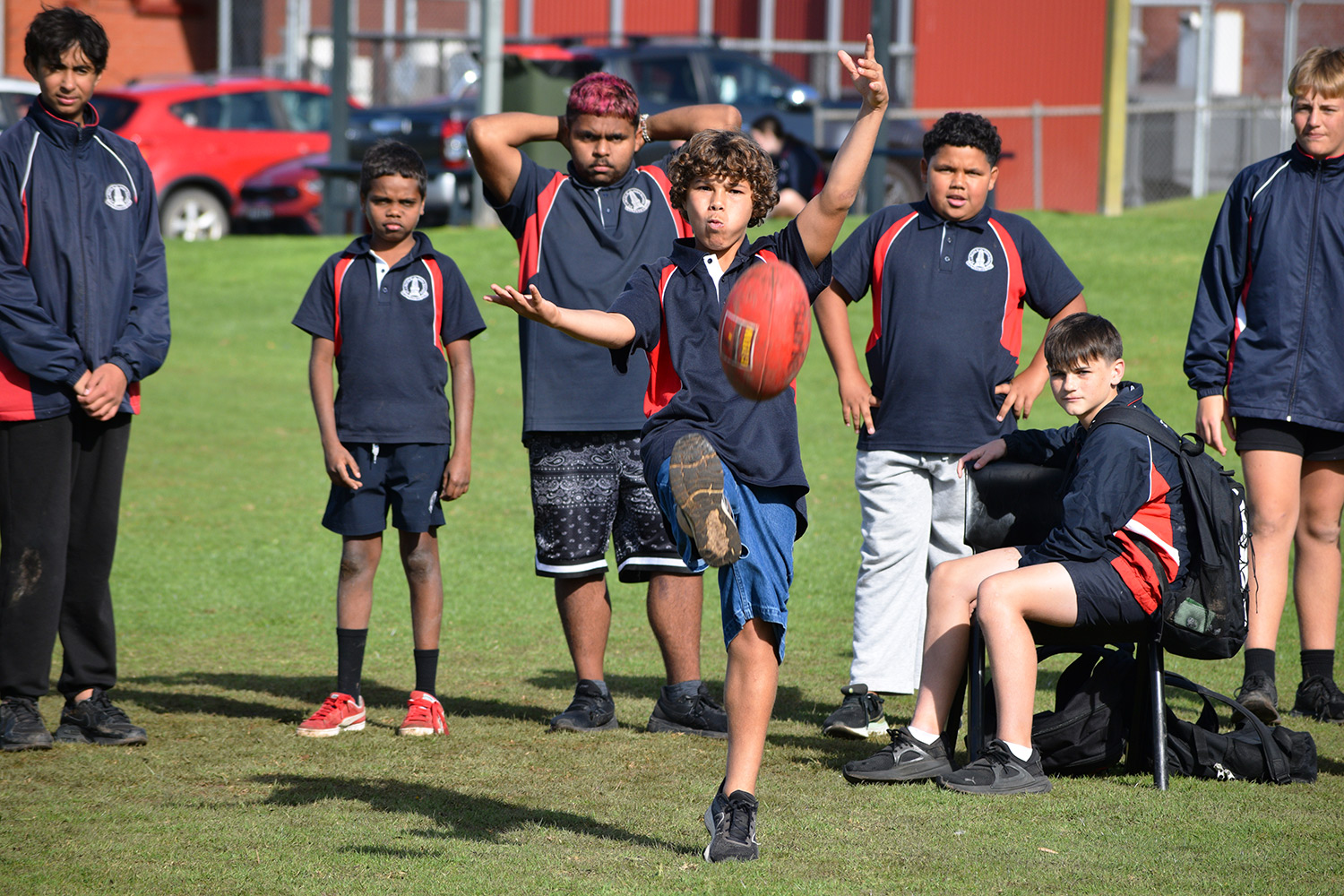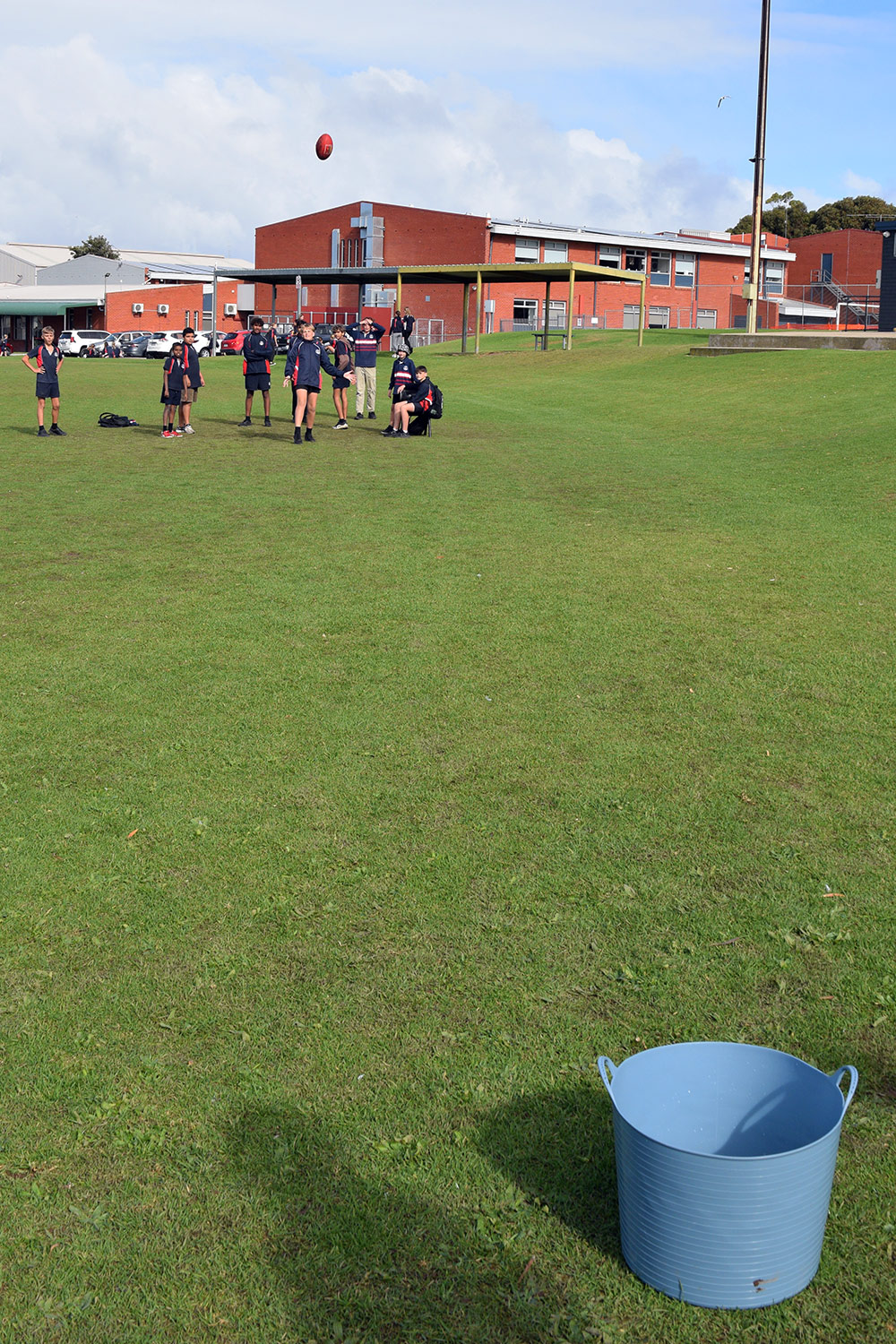 Lots of valiant attempts were made by students and staff alike – even the Principal Mr. Craig Akehurst had a decent crack! Ultimately though, only two students managed to achieve the ultimate goal – congratulations to Scott Kropinyeri (Year 8) and Graham Goldsmith (Year 10) for landing one of their kicks into the bucket; they each earned themselves a $10 Canteen voucher.