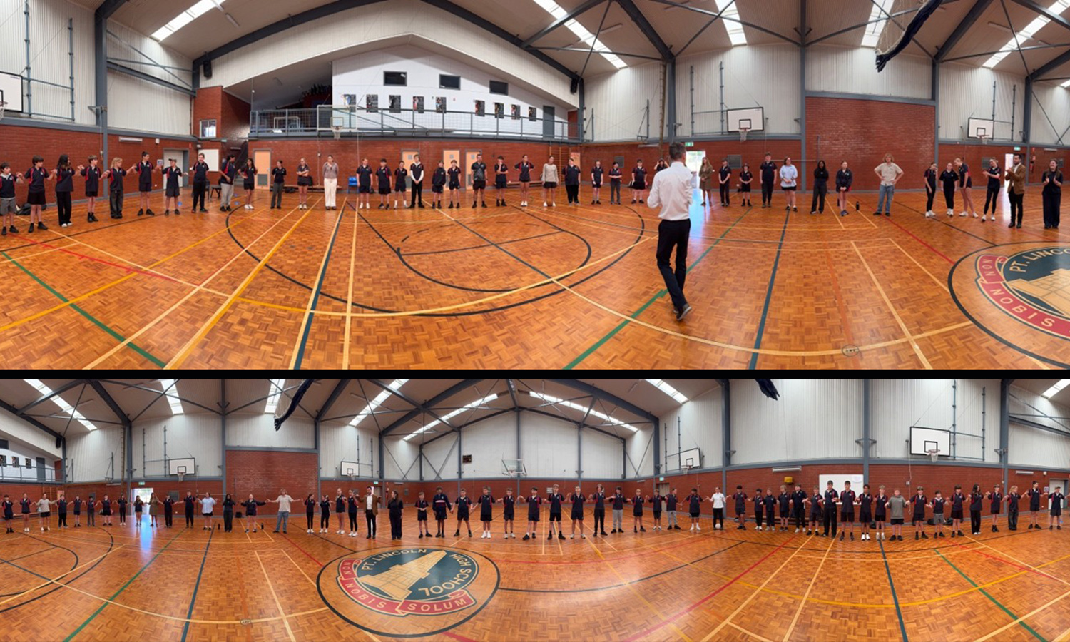 Students formed a large circle to discuss our three school values of Respectful, Responsibility and Inclusive, making personal commitments on what they could improve. Lead by Principal Mr. Craig Akehurst and Channel Leader Mr. Angus Martin, our Year 8 students practiced communicating through voice and action and worked together as a team.