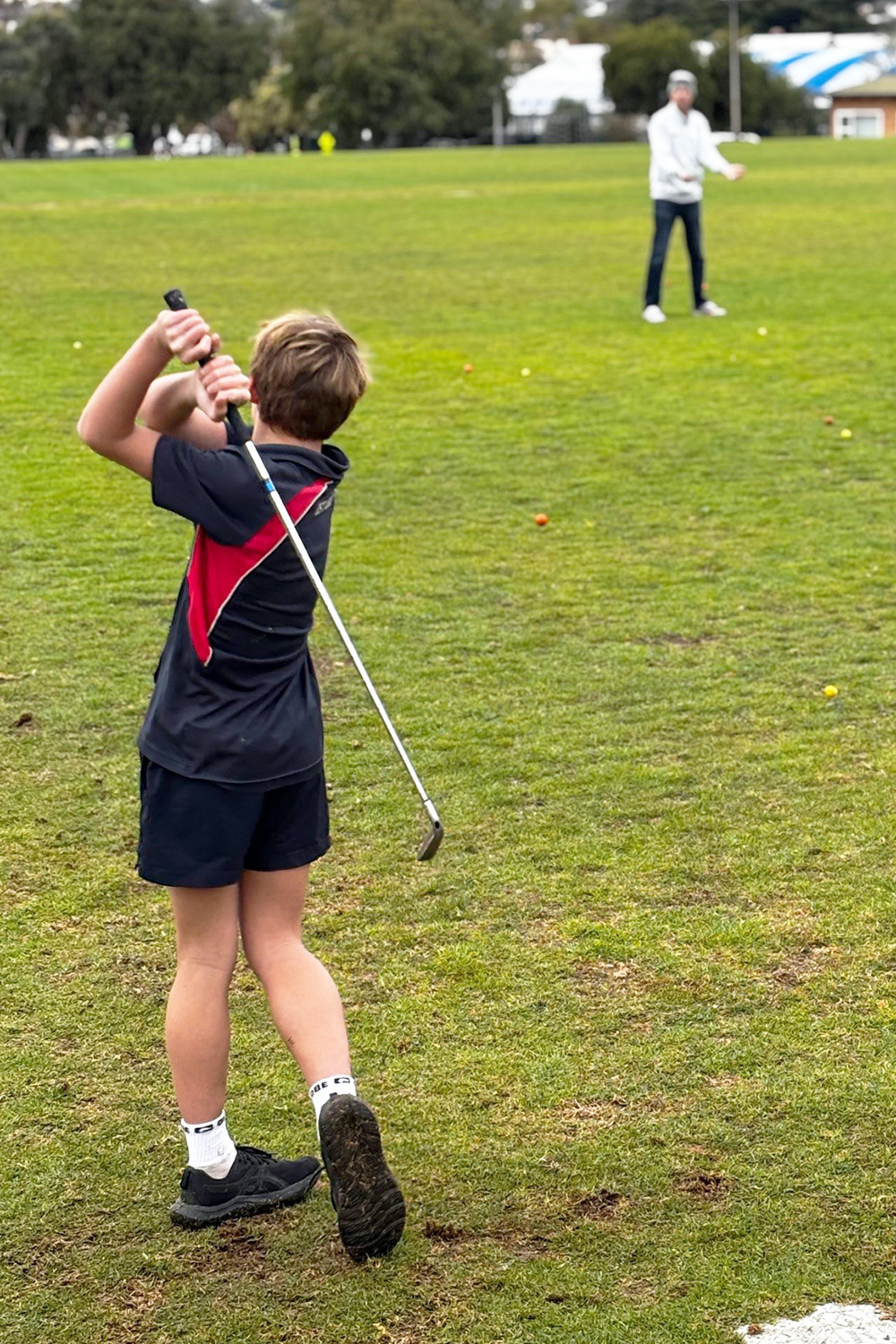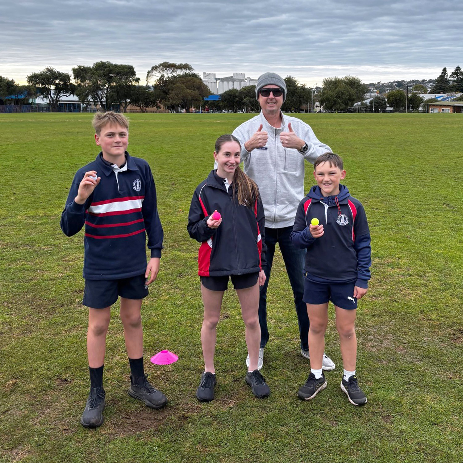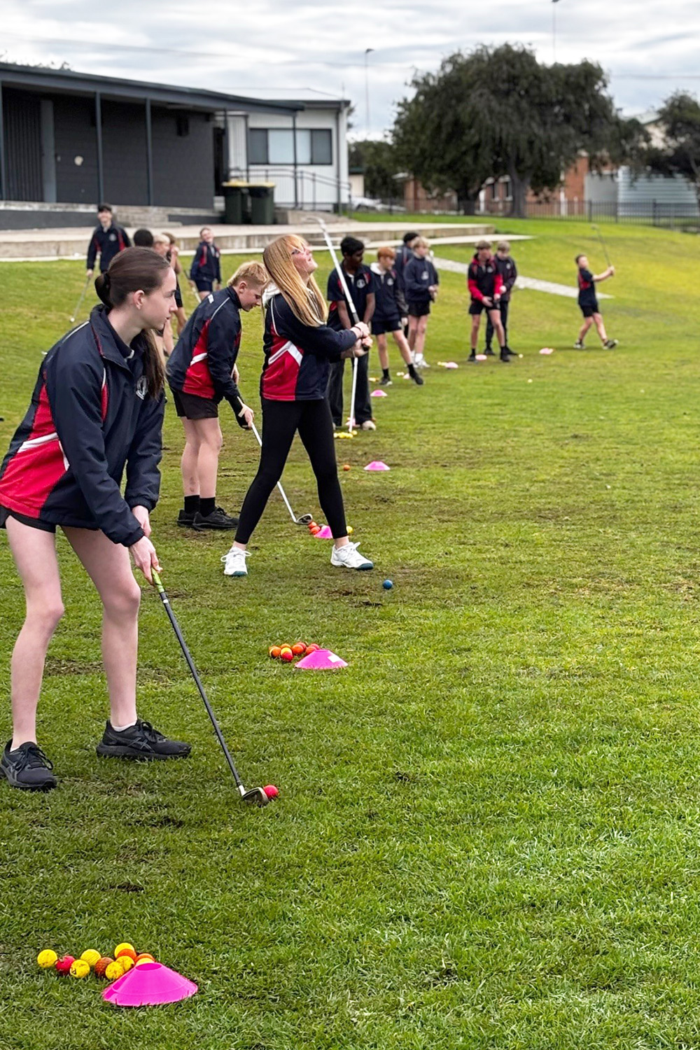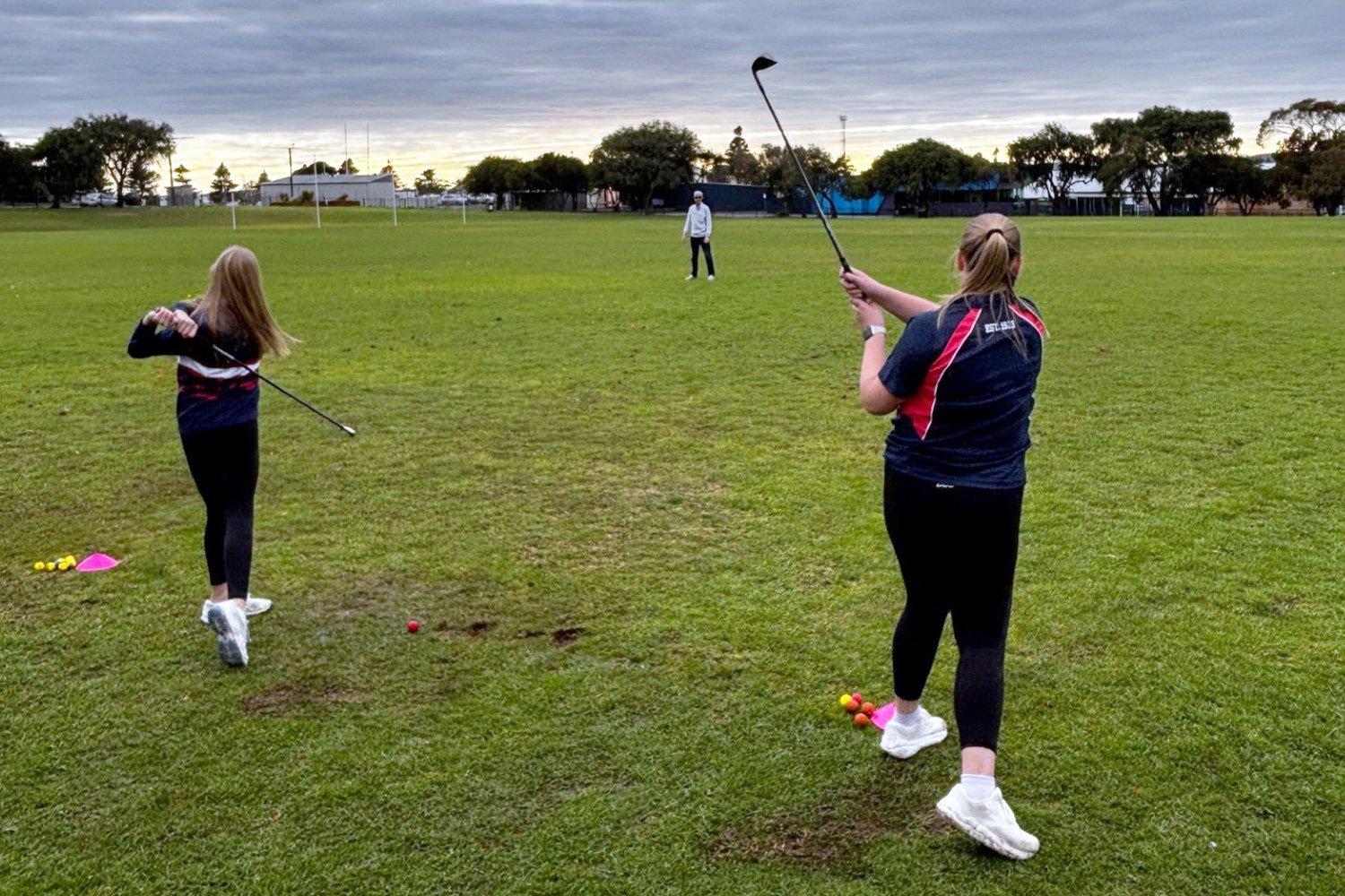 Despite the frosty conditions on the Oval, the twenty eager golfers performed strongly, quickly improving their skills with some basic coaching. Winners of the “Nearest the Teacher” competition were Lacey Cullen (centre) and Nixon McKie (right), while Jobe Nielsen (left) claimed the “Most Improved” prize – they are pictured here with Mr. Shaun Thomas (Activity Leader).