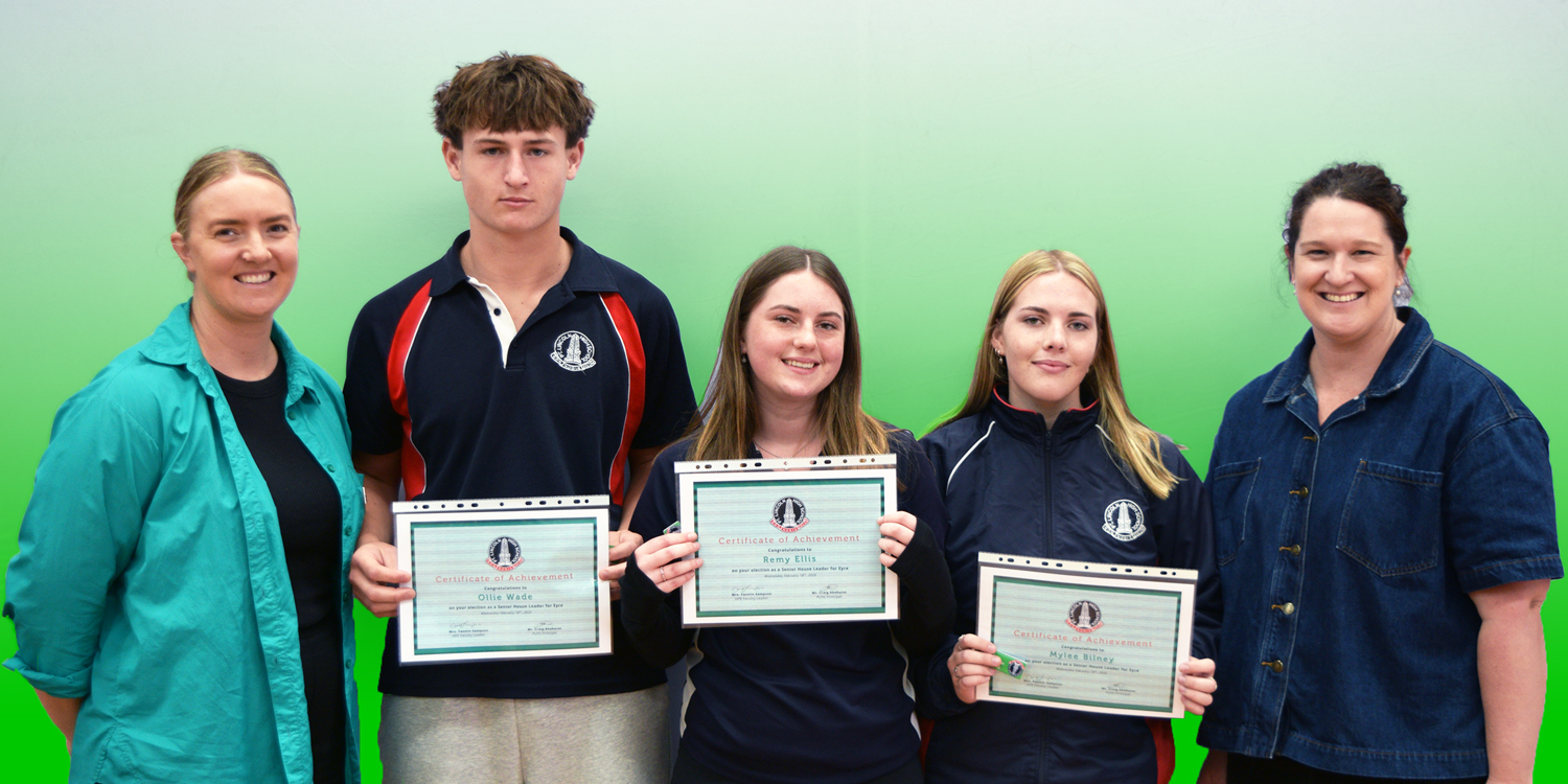 The main purpose of the assembly was the announcement of our 2026 student House Leaders. Staff House Leaders took turns to proudly present certificates of achievement and badges of office to the following students: