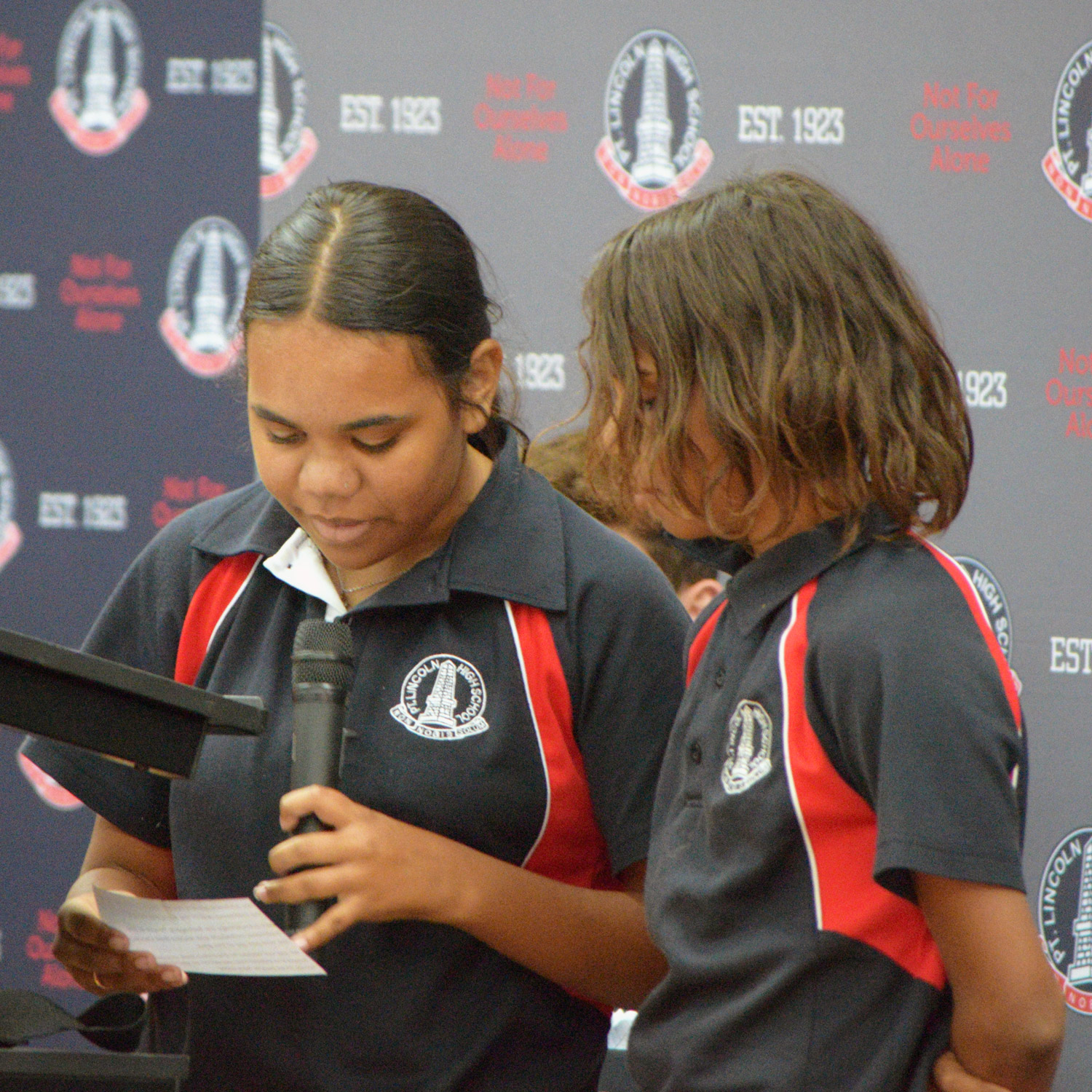Our confident Masters of Ceremony were School Captains Airlie Hartwich and Max Stanley, who led proceedings with poise and professionalism. The assembly began with a thoughtful Welcome to Country from Year 7 student Jackson Long alongside his older sister, Year 9 student Skyla (who also happened to be celebrating her birthday).