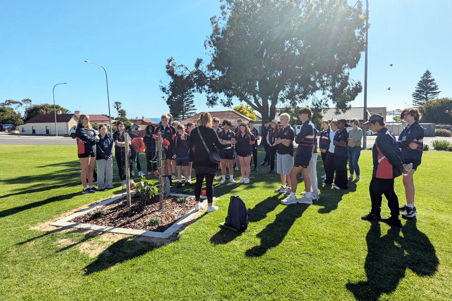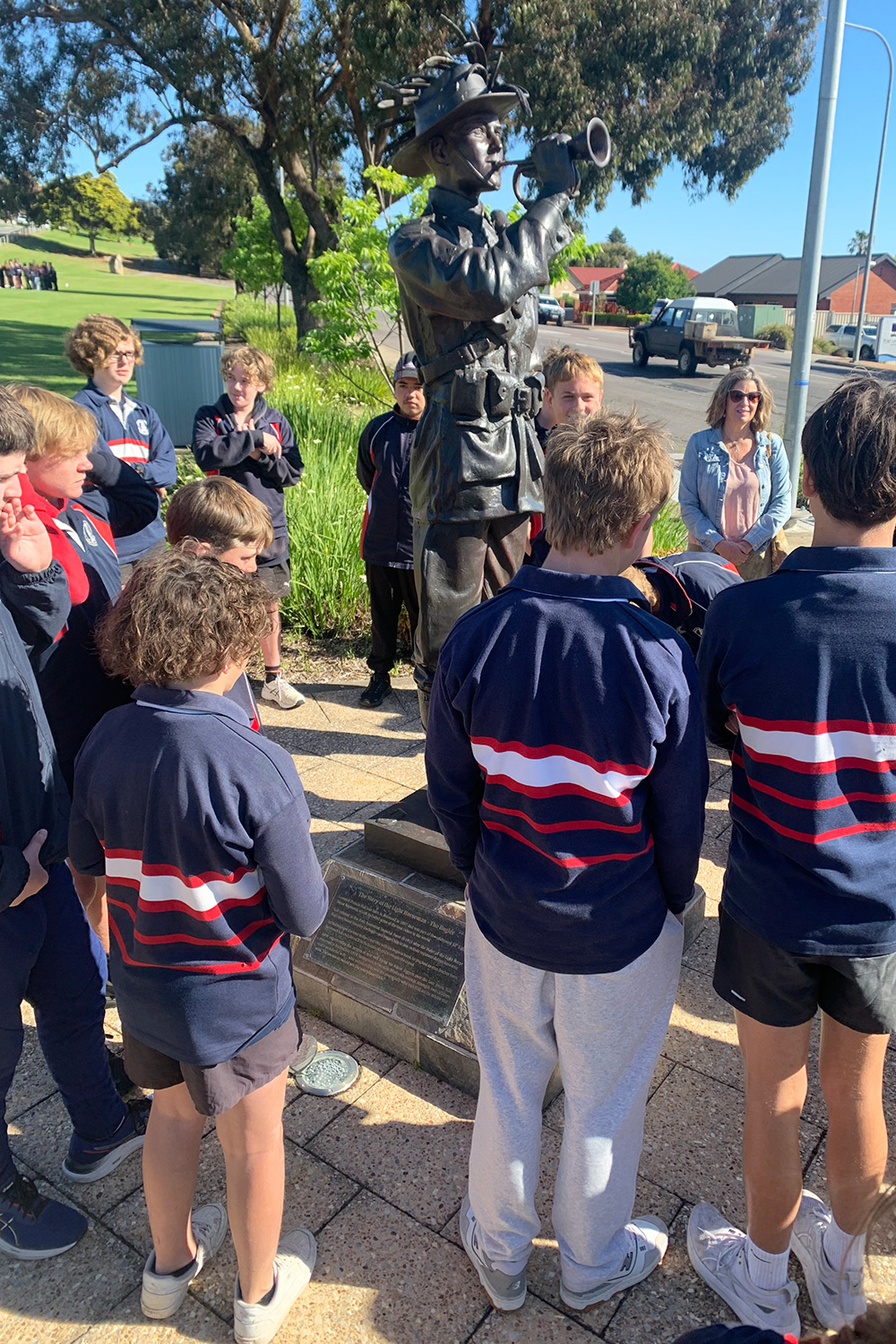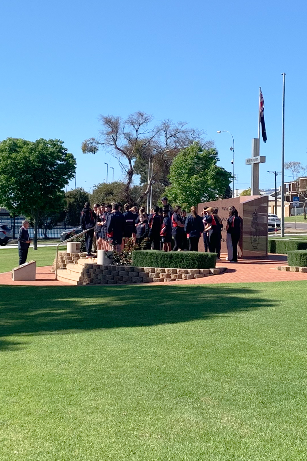 Following yesterday’s Remembrance Day observance, our Year 8 crew embarked on a learning expedition earlier today to the Port Lincoln War Memorial. In ideal conditions, well over a hundred Year 8 students – accompanied by their Dharna Crew Leaders – walked to Eyre Park to learn about various aspects of this important site within our community.