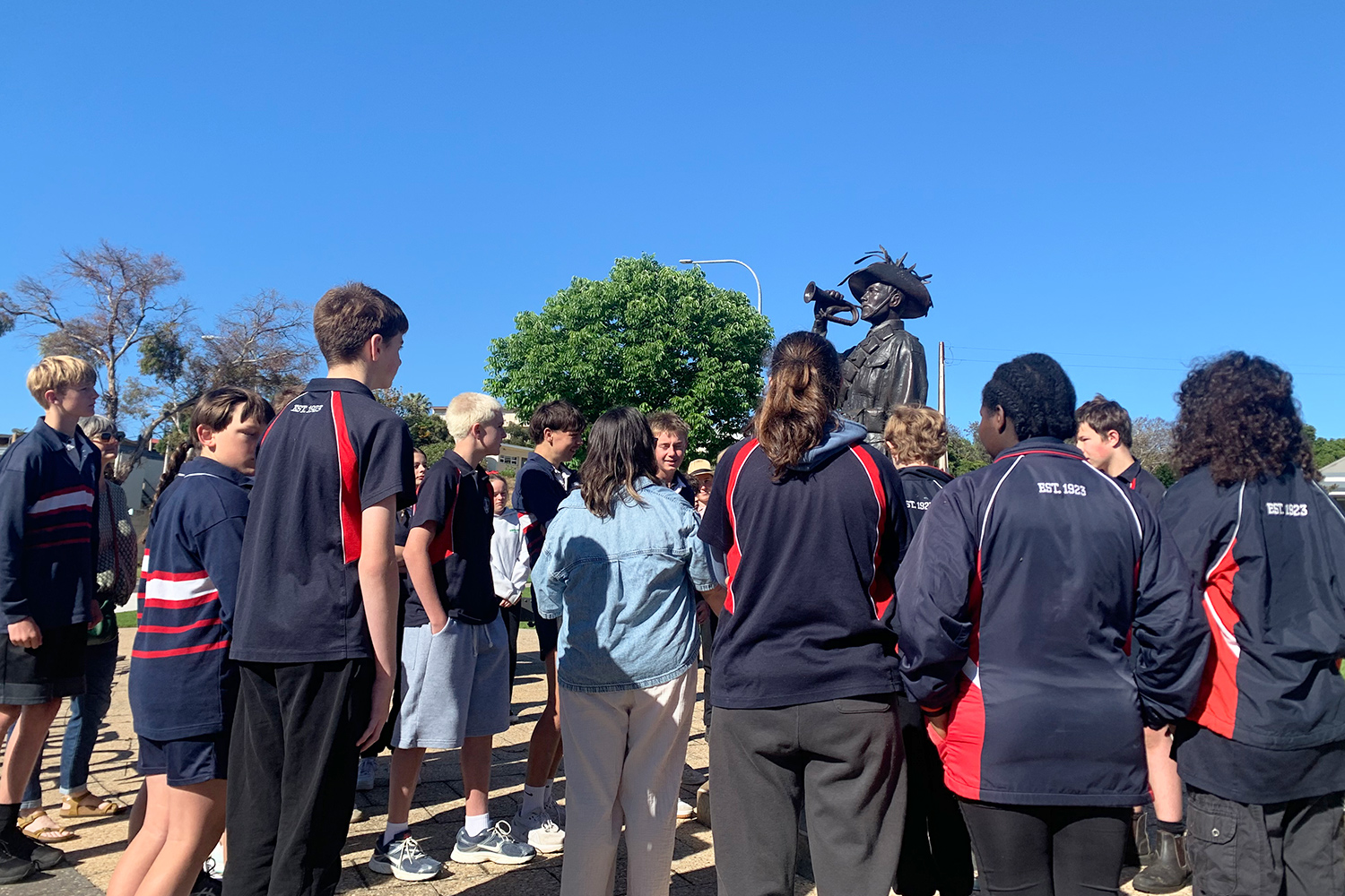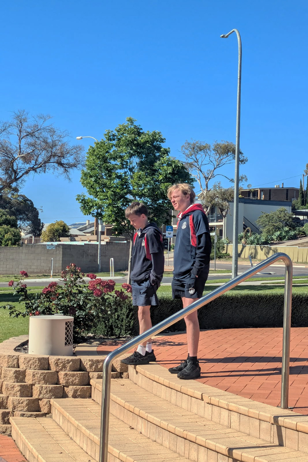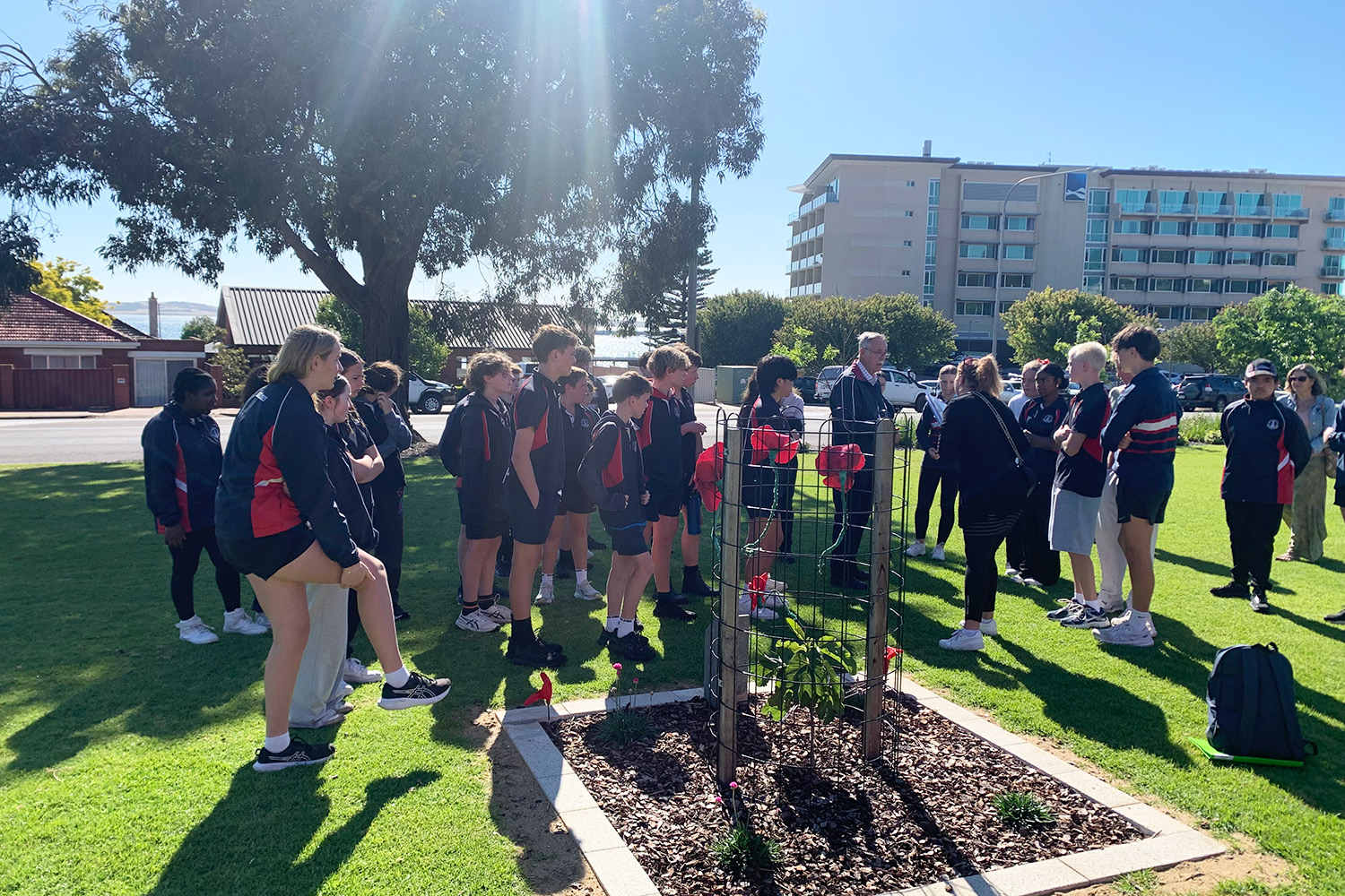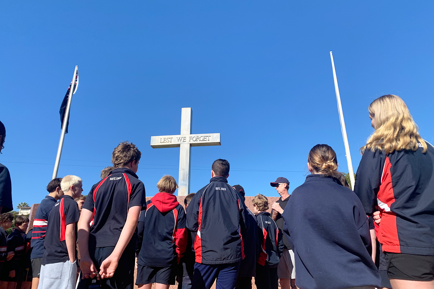 Following yesterday’s Remembrance Day observance, our Year 8 crew embarked on a learning expedition earlier today to the Port Lincoln War Memorial. In ideal conditions, well over a hundred Year 8 students – accompanied by their Dharna Crew Leaders – walked to Eyre Park to learn about various aspects of this important site within our community.