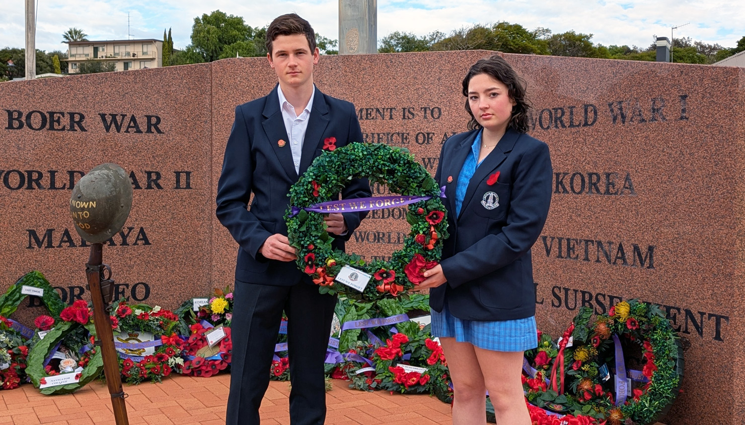 Earlier today, our two School Captains – Liam Akehurst and Sophie Lang (pictured) – represented Port Lincoln High School at the ANZAC Day Morning Service, laying a wreath on behalf of the PLHS community.