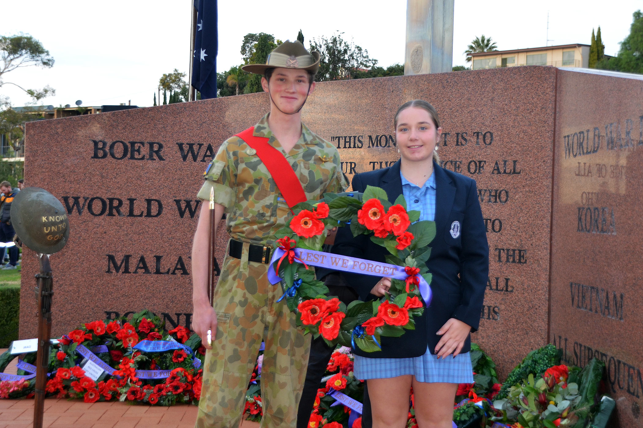 On ANZAC Day, our School Captains – Max Stanley (left) and Airlie Hartwich (right) – attended the Dawn Service. Airlie laid a wreath on behalf of the PLHS school community, while Max, a Cadet Warrant Officer Class 2, led the 416 Army Cadet Unit’s Catafalque Party throughout the ceremony.