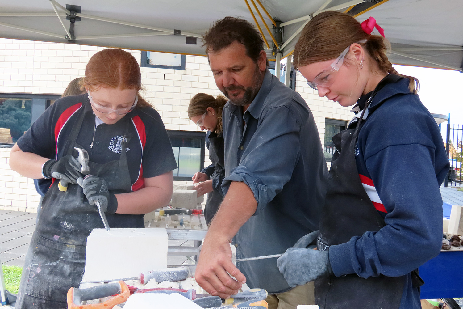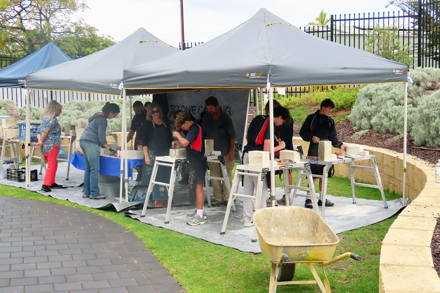 The SA Stone Sculptors’ Association (SASSA) received funding from an Adelaide-based charitable trust to present a soft limestone carving ‘come & try’ workshop during Port Lincoln’s recent SALT Festival. In the following days, five workshops were conducted on site at Port Lincoln High School for students from PLHS, our Transition & Learning Centre and Saint Joseph’s School.