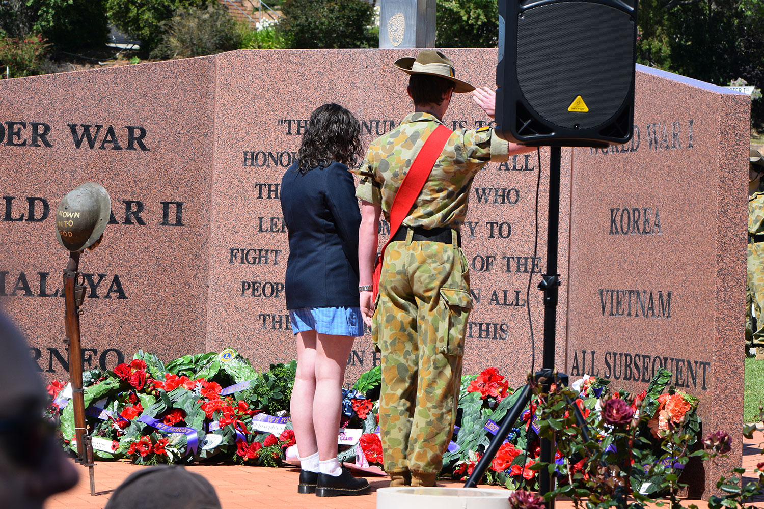 During the official observance, PLHS School Captain Sophie Lang laid a wreath on behalf of our school community; Sophie was supported by Year 11 student and Army Cadet, Max Stanley. A proud Brody also supported Aboriginal Vietnam veteran Mr. Gil Green to lay his wreath.