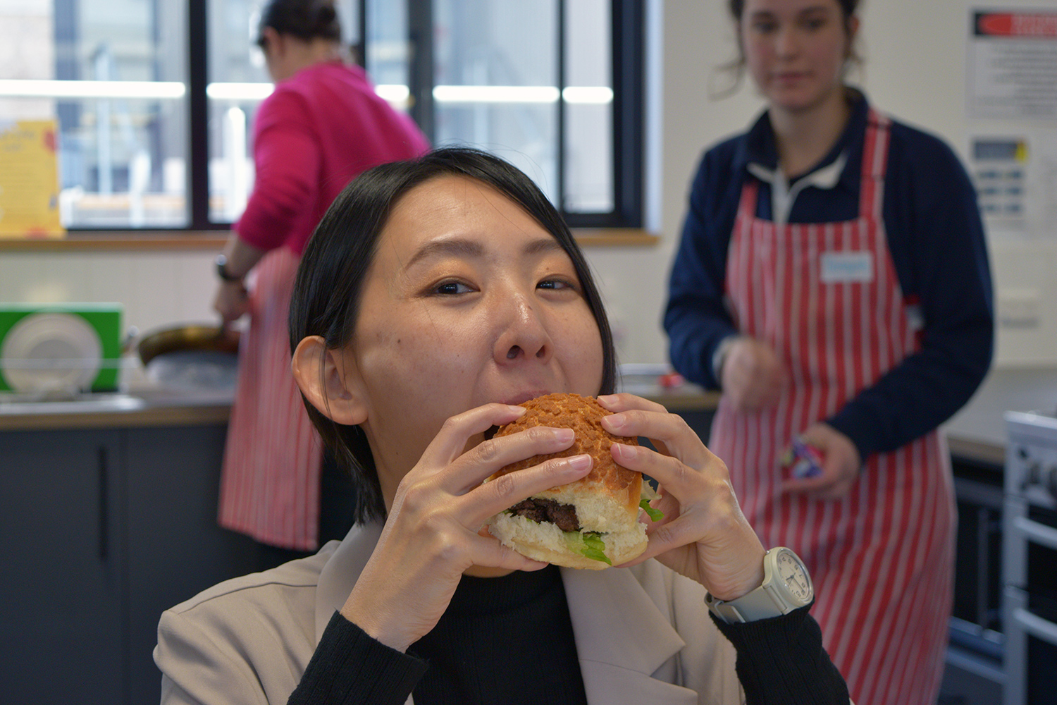 - Cooking with Mrs. Kylie George’s Year 10 Food Technology class – the resulting “oishii” kangaroo burgers were then eaten as shared lunch