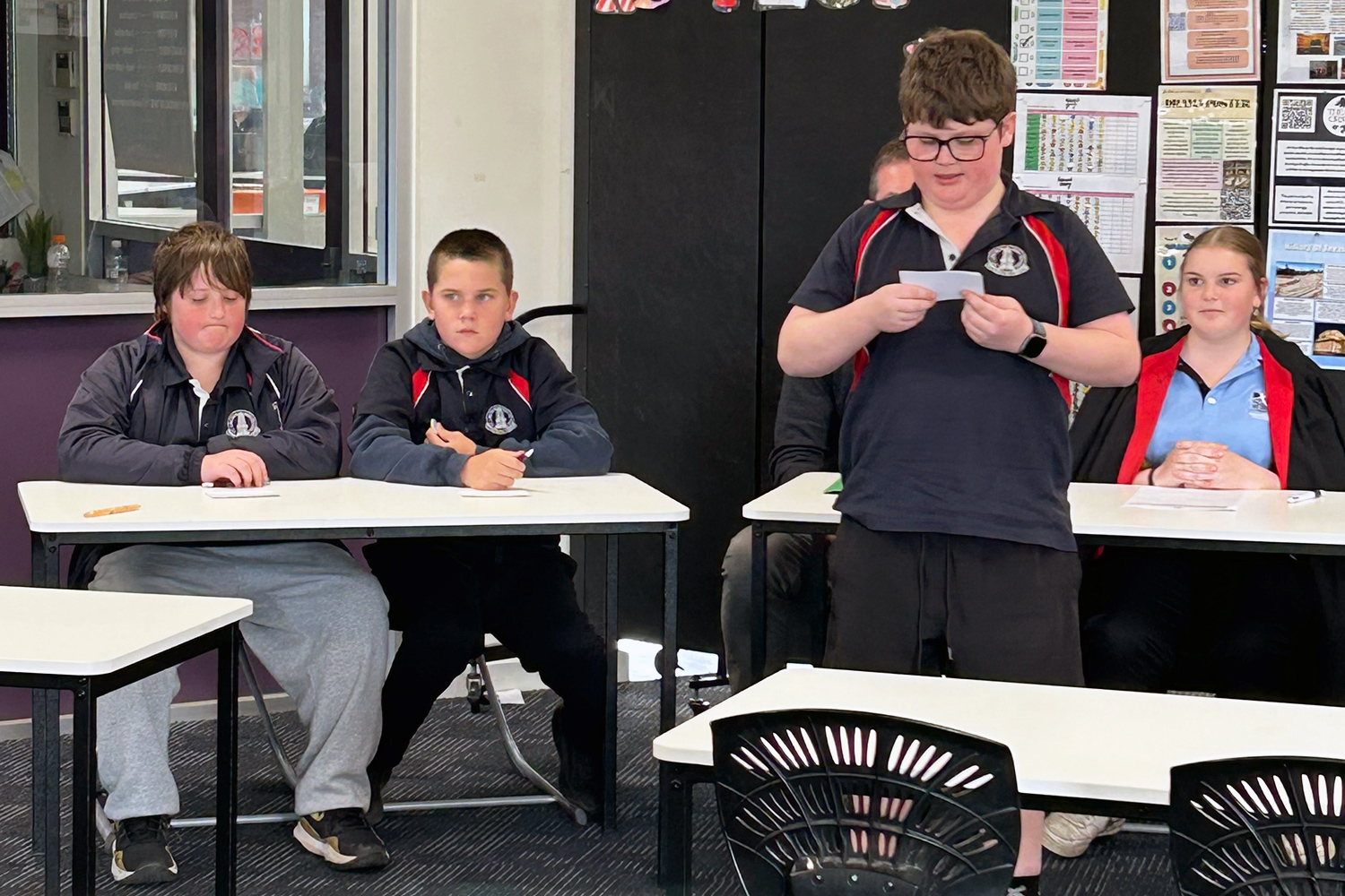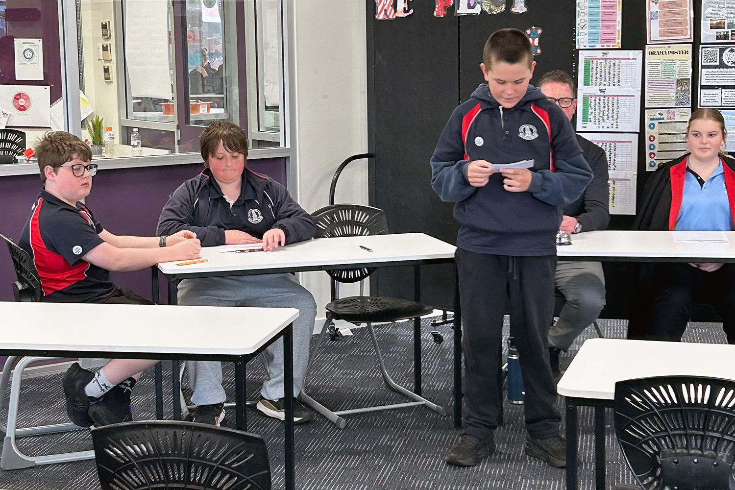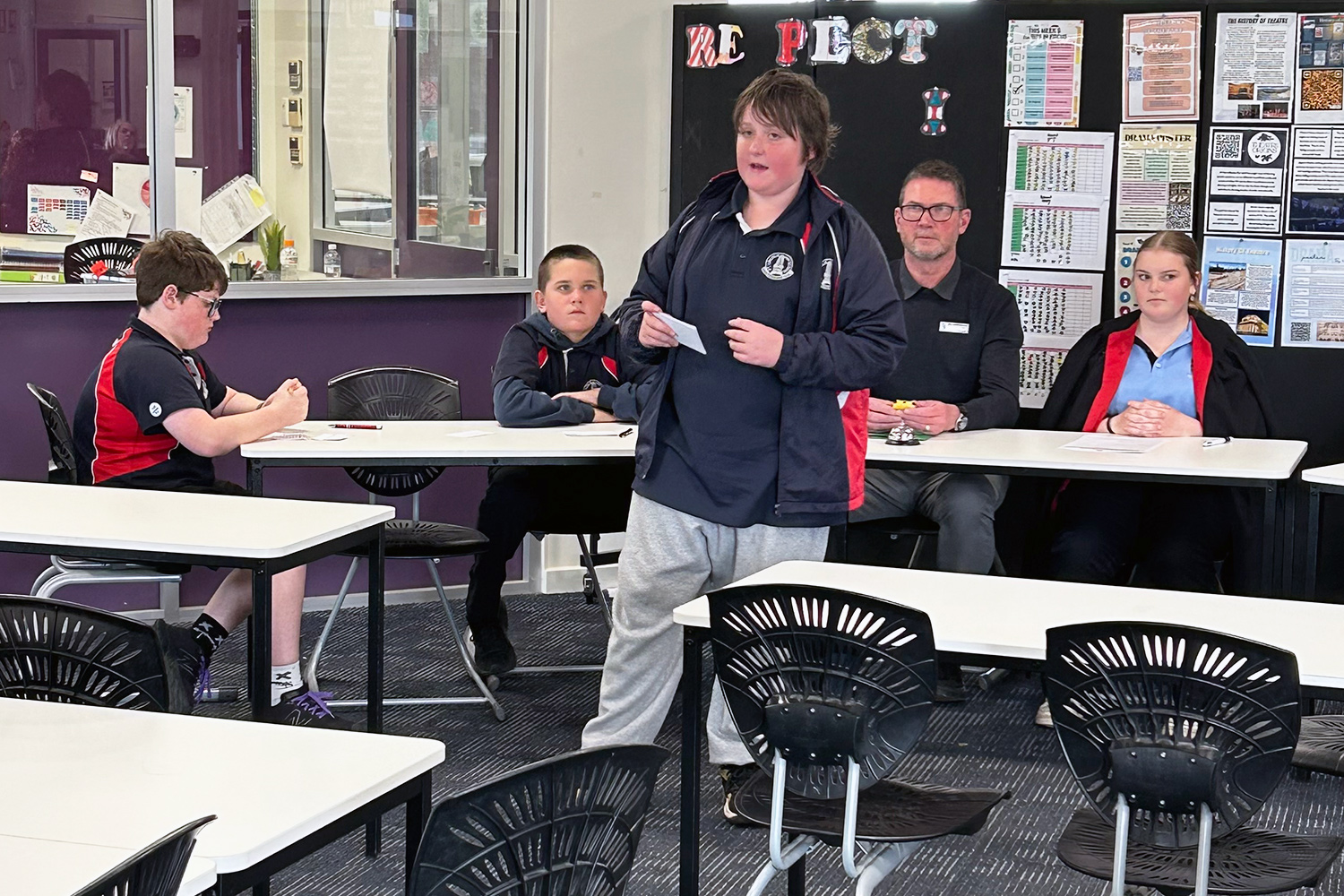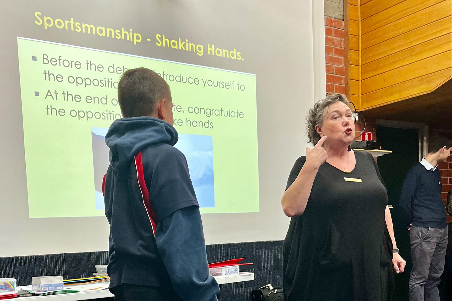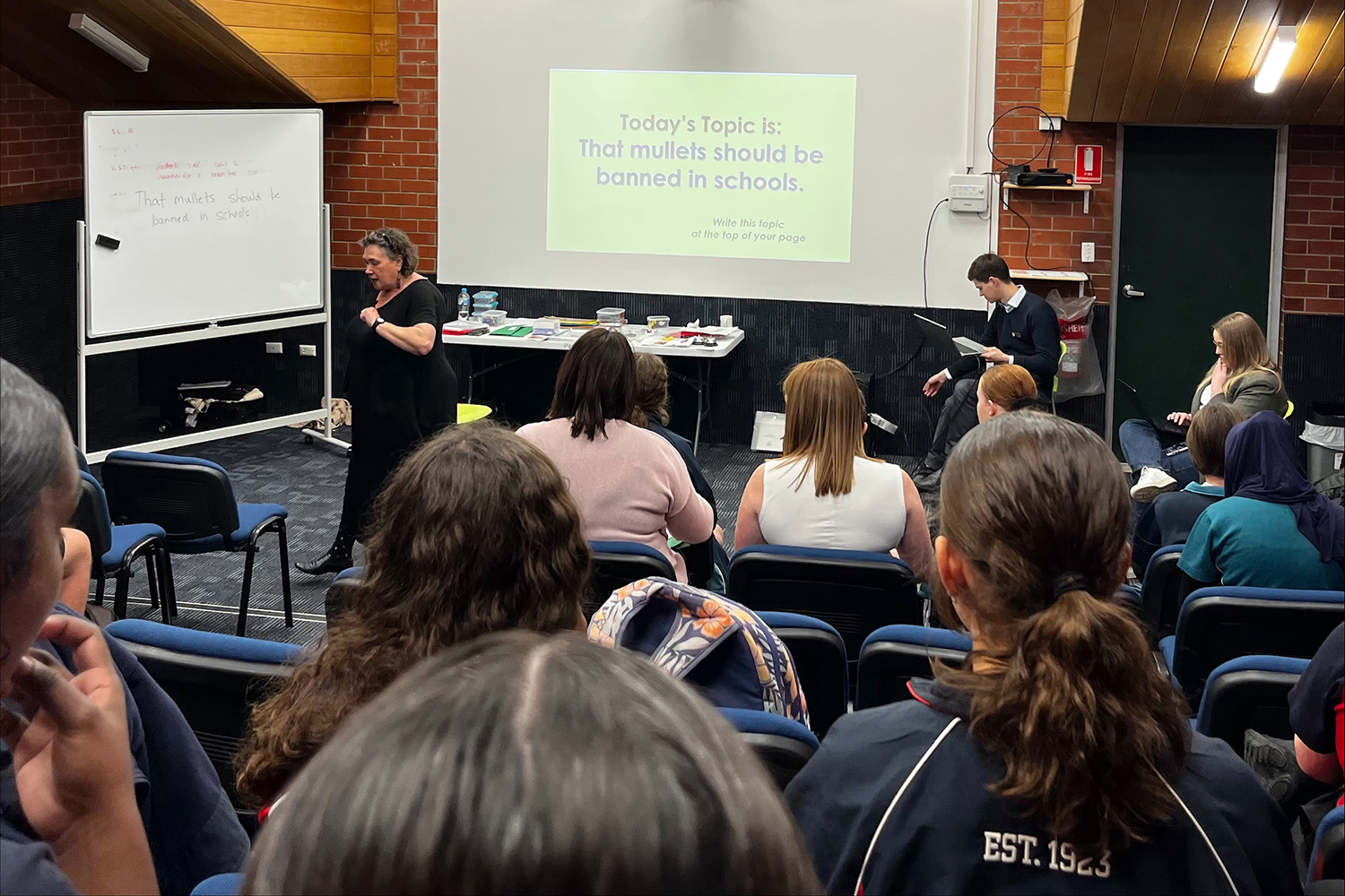 Students learnt the basics of debating, including a firm handshake (not like a ‘dead fish’), formal greeting (Madam/Mister Chairman), argument structure, as well as a host of tips for good public speaking. Choosing to be either first, second or third speaker, students were asked to plan a debate in either Affirmative or Negative for the statement: Mullets should be banned in schools.