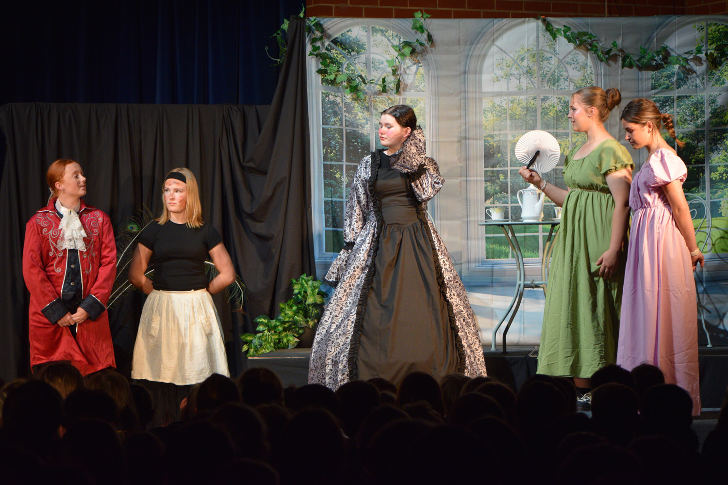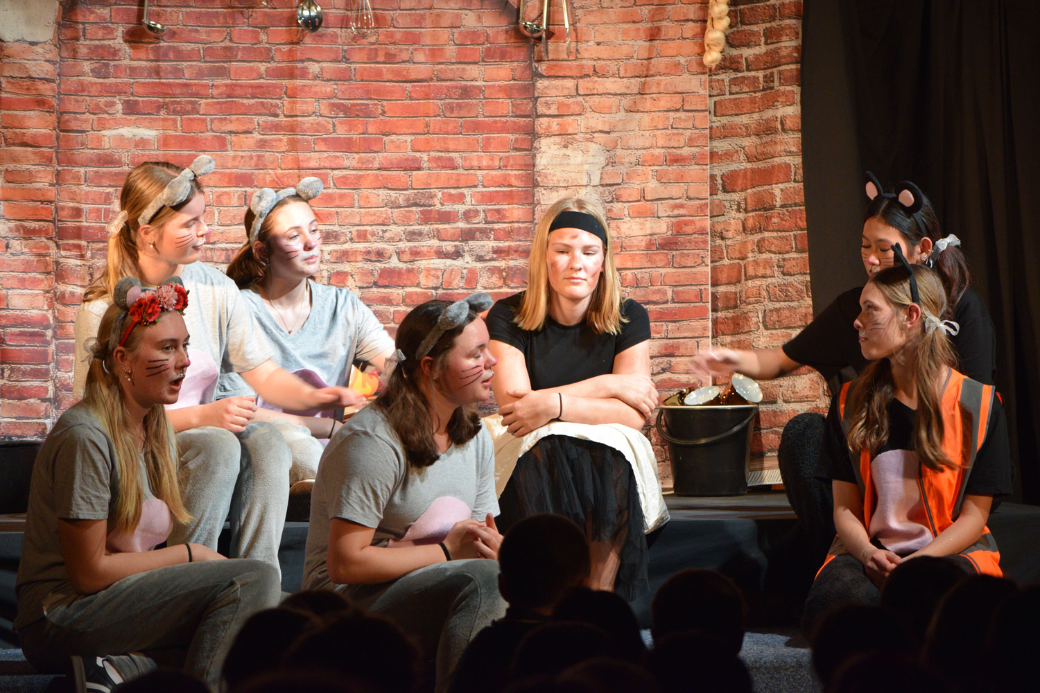 Fortunately, our small class of Year 9 Drama students was able to access the Hall for their nine performances, despite the renovations happening in this space. With the assistance of Stephen Campbell and a merry band of Year 10 students, temporary lighting and sound was created to illuminate the stages and produce the theatrical magic expected from a PLHS Panto.