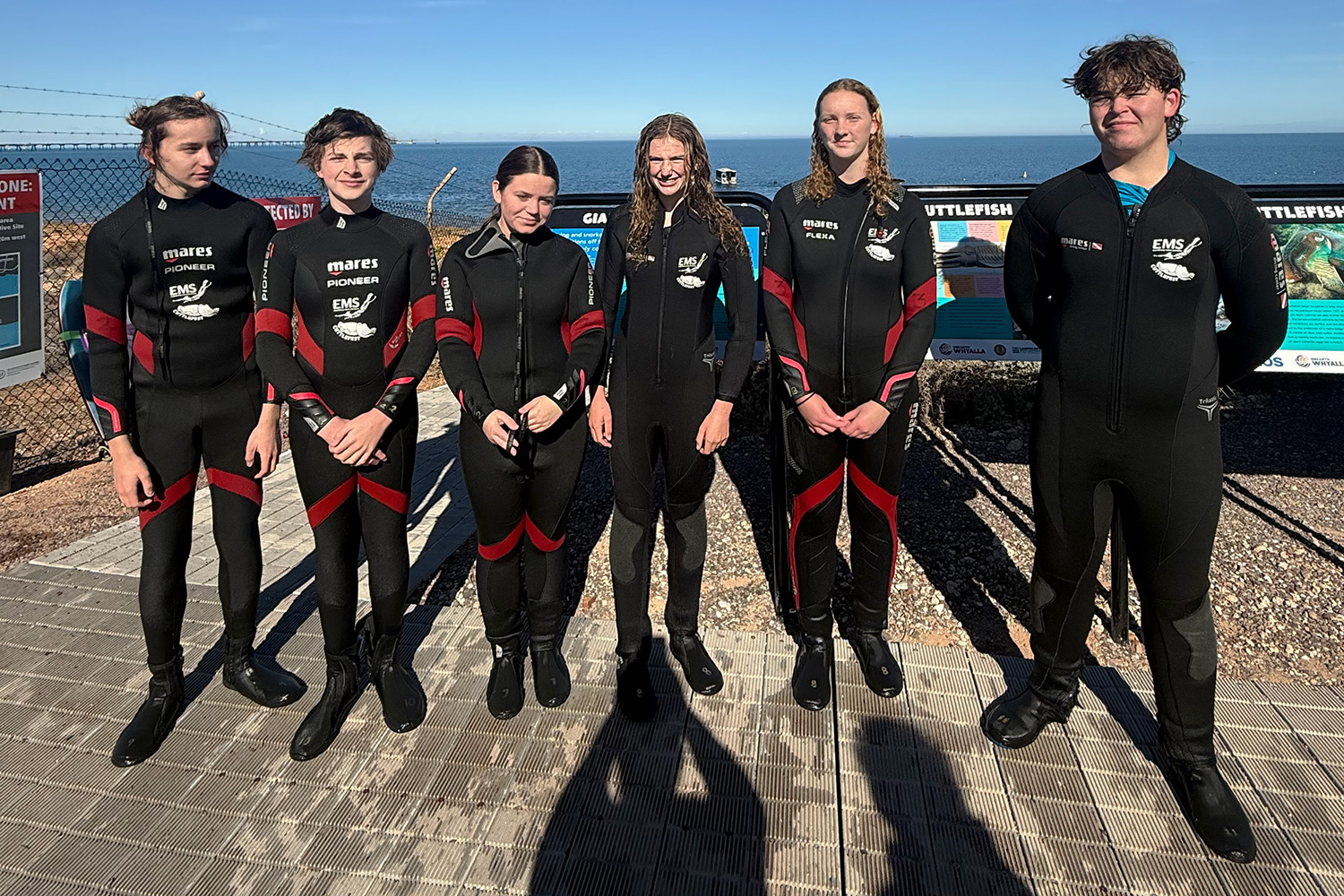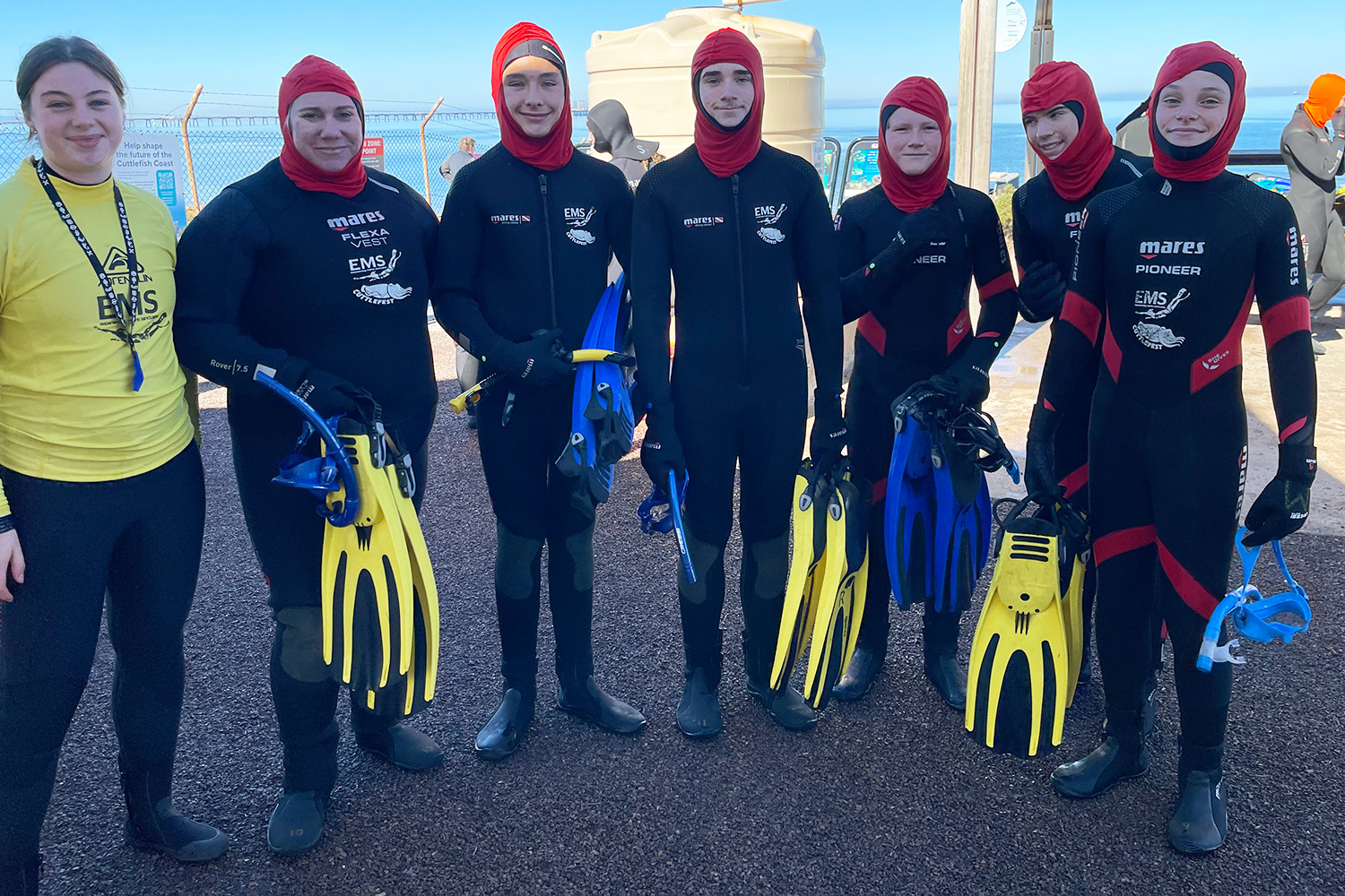 Earlier today, seventeen Year 9 Science students were chosen to take part in a Swim with the Giant Cuttlefish experience. This event was the second element of a three-part STEM project in conjunction with EMS and Department for Environment and Water; our students collected data on a range of things such as behaviours and predation.