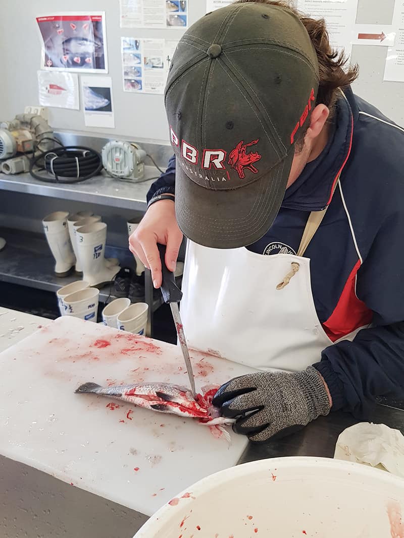 See the photos of the Yr 11 Aquaculture class learning the processing tasks, to sharpen knives and fillet fish and vacuum pack.