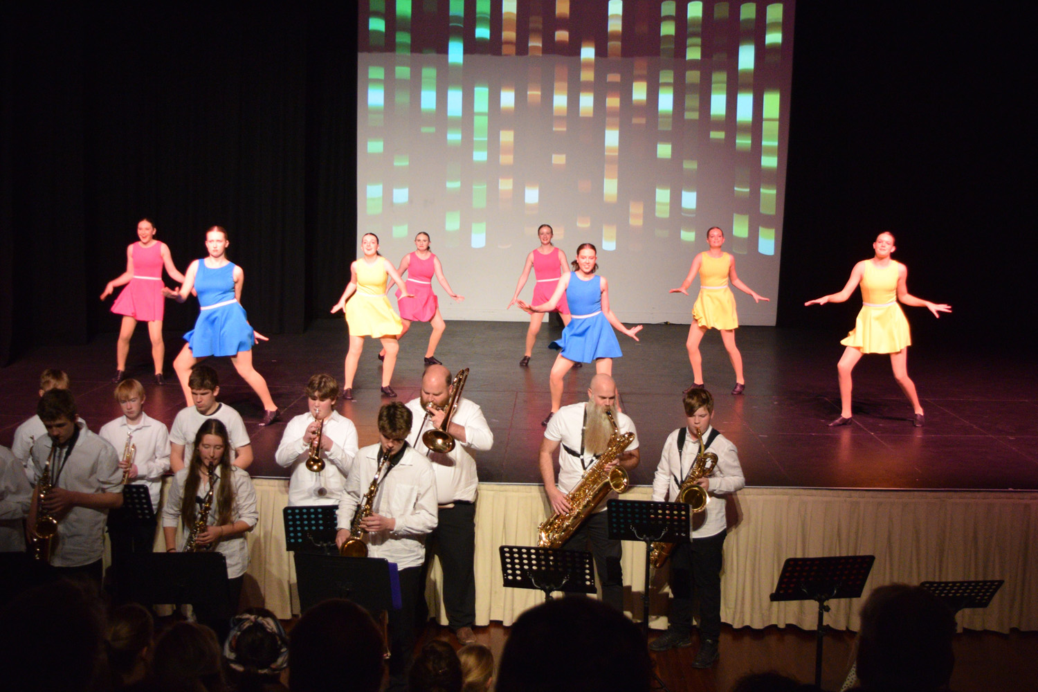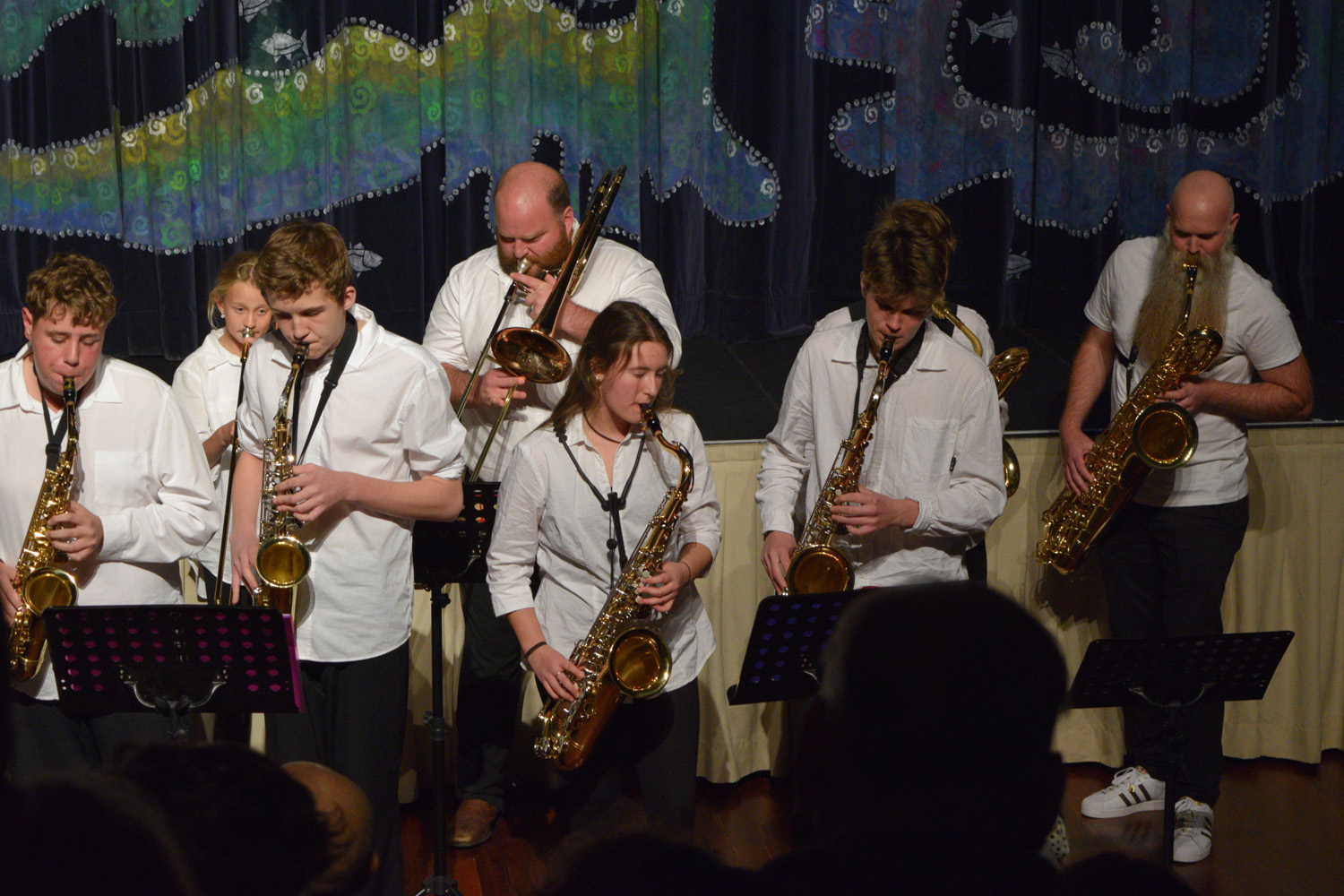 The largest (and loudest) addition to this year’s show however, was undoubtedly the inclusion of several numbers performed by our Concert Band, expertly led by Mr. Scott McConnell and Mr. Colin Campbell. The audience loved the big brass sound delivered by the talented young members of our Instrumental Music program – special shout out to the Port Lincoln Primary School students who joined in for several pieces.