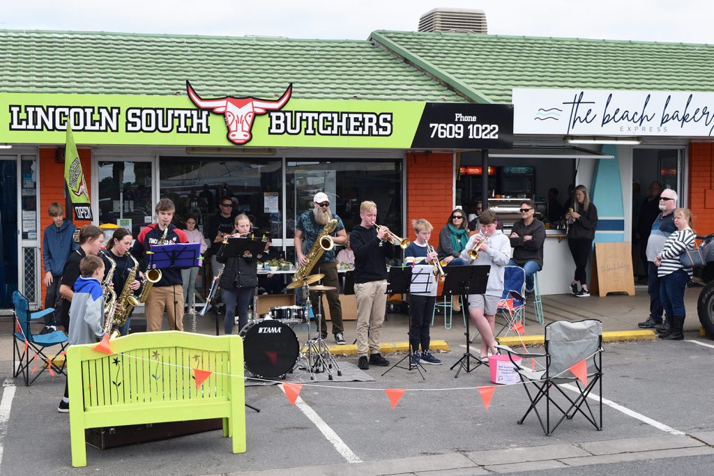 Saturday shoppers were treated to a pair of performances by our Concert Band yesterday, firstly in front of Lincoln South Butchers on Shepherd Avenue, then later in the day in front of Coles Supermarket.