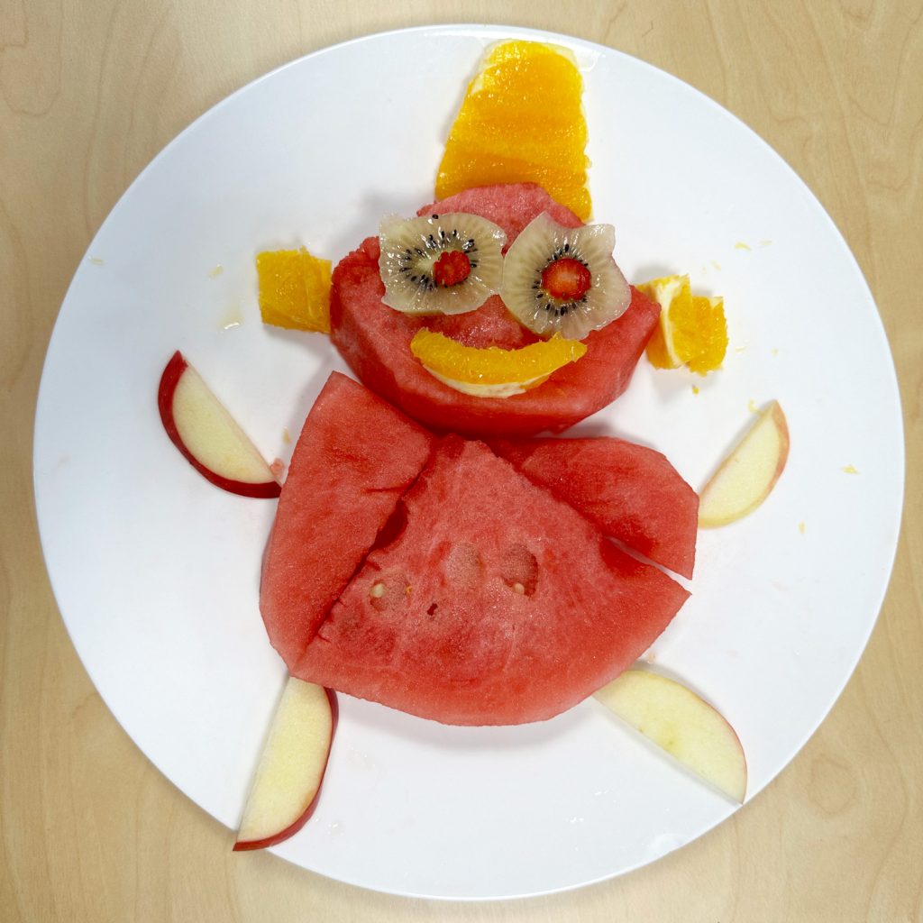 The design brief required each “artwork” to be upright (standing) as opposed to simply laying fruits on a plate – Miss Helbig is really struggling to pick a winner; feel free to comment with your favourite…