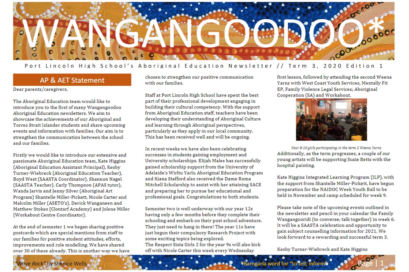 The PLHS Aboriginal Education team would like to share their first Wangangoodoo newsletter with you.