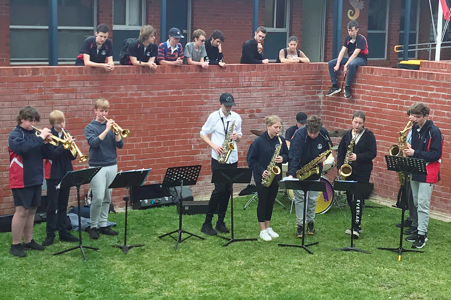 During lunchtime, our Stage Band students performed in the Amphitheatre – please enjoy the snippet of video/audio from their set below.
