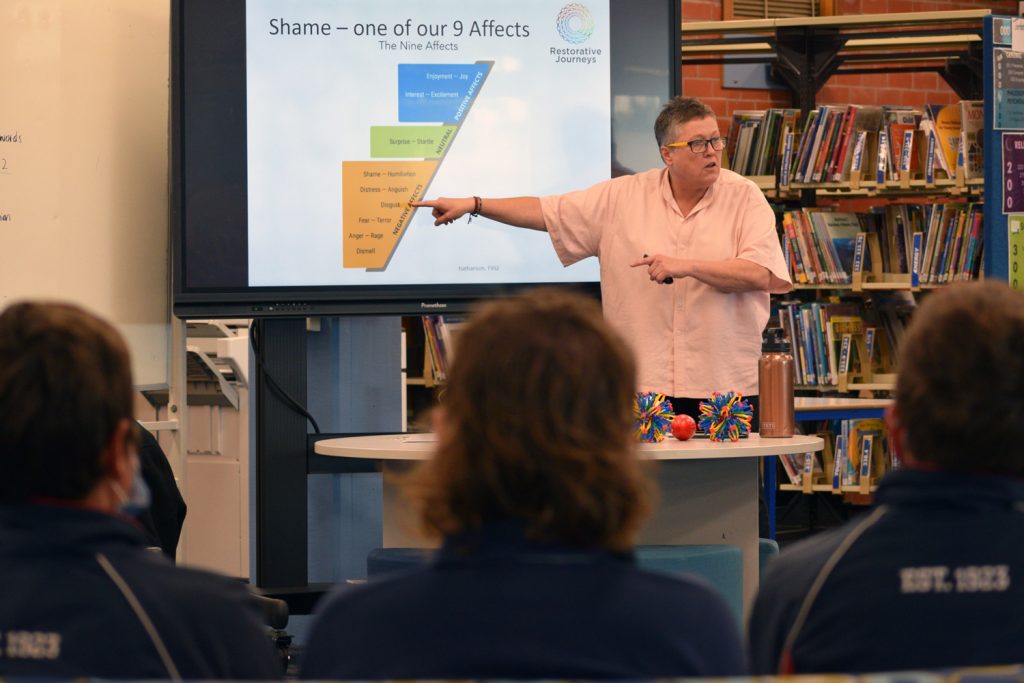 Our students learned about the theoretical components of Restorative Practice and gained reliable and practical strategies to engage and build strong, healthy relationships with young people and families. A key element of this training was the focus on real-world activities that can be implemented into daily life to provide consistency in building the school community and responding productively when things go wrong. After school, staff were invited to attend a session during which Kerrie demonstrated Proactive Circles, Responsive Circles and Staff Circles.