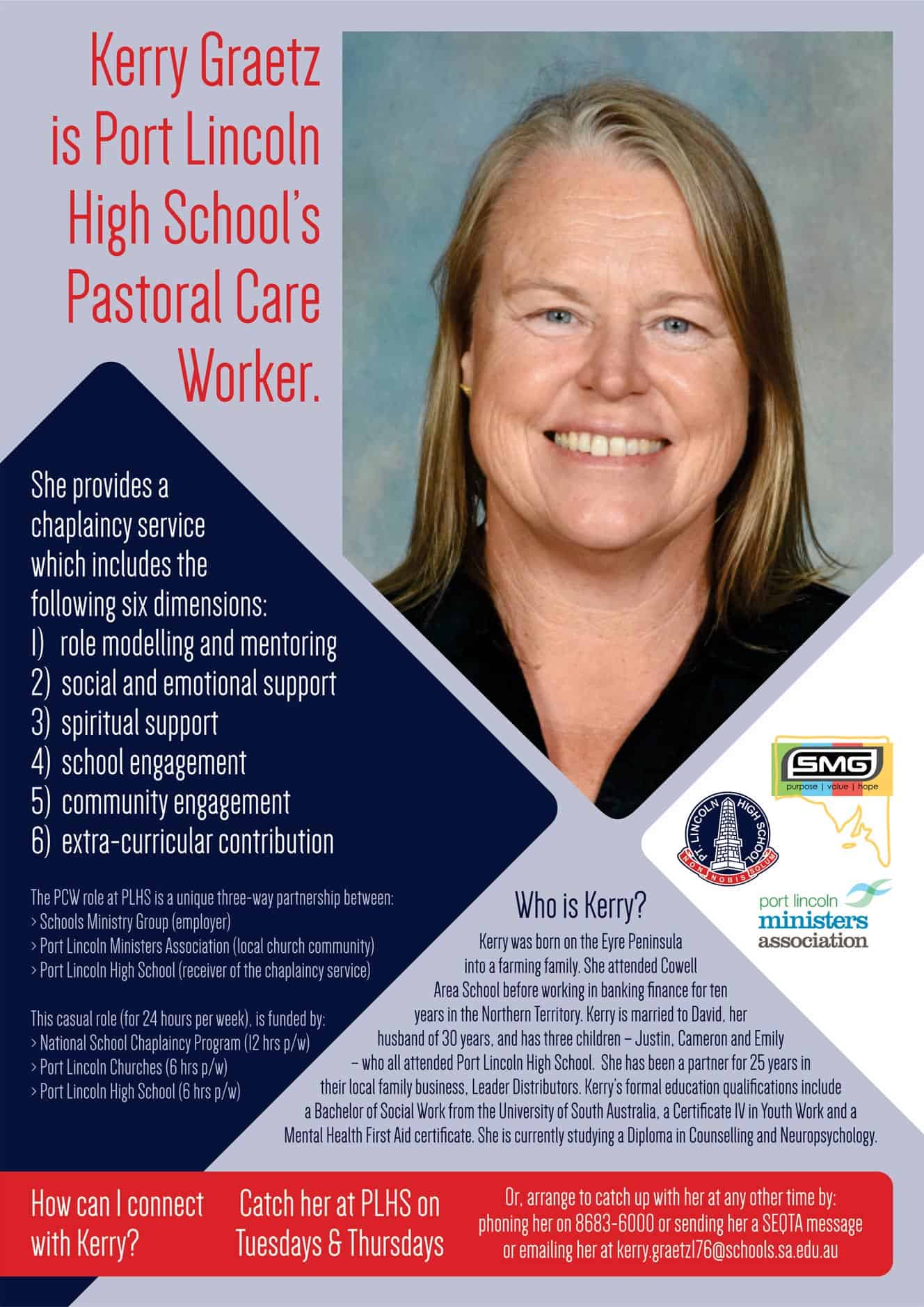 Kerry Graetz is Port Lincoln High School’s Pastoral Care Worker