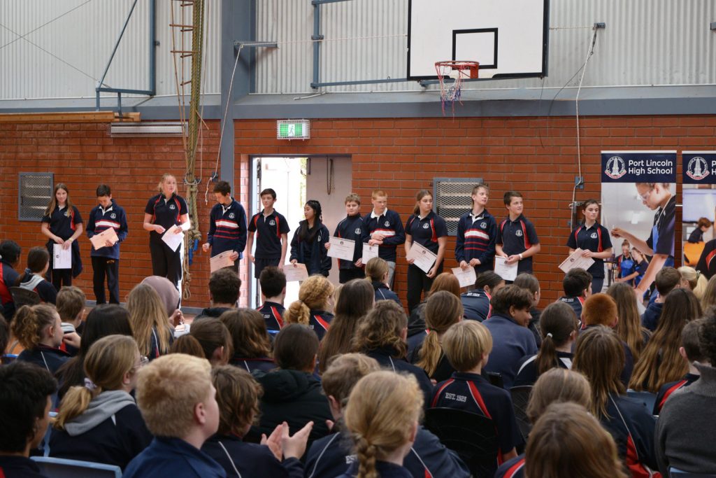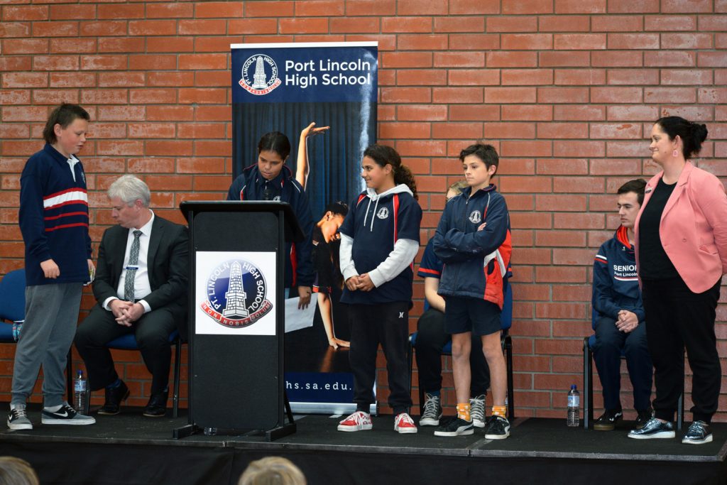Earlier today, a formal Middle School assembly was staged in the PLHS Gymnasium to celebrate the fine Semester 1 efforts and achievements of many Year 7, 8 and 9 students. The ceremony was conducted by Deputy Principal Mrs Lesley Warren and opened with an Acknowledgement of Country delivered by Lucas Retallick, Taylah David-Mabura, Jatilia Weetra-Besant and Taylor Dodd.
