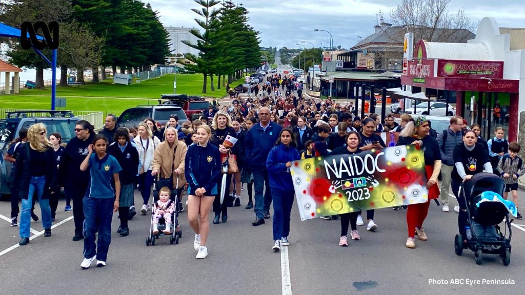 - NAIDOC March: Earlier today, senior Aboriginal and Torres Strait Islander students, along with SRC representatives, attended the community march from the Yacht Club to the new Nature Play Space on Tasman Terrace; Certificate II in Kitchen Operations students assisted Rotary to cook and serve the community sausage sizzle; many thanks to ABC Eyre Peninsula for the photos (above and below)