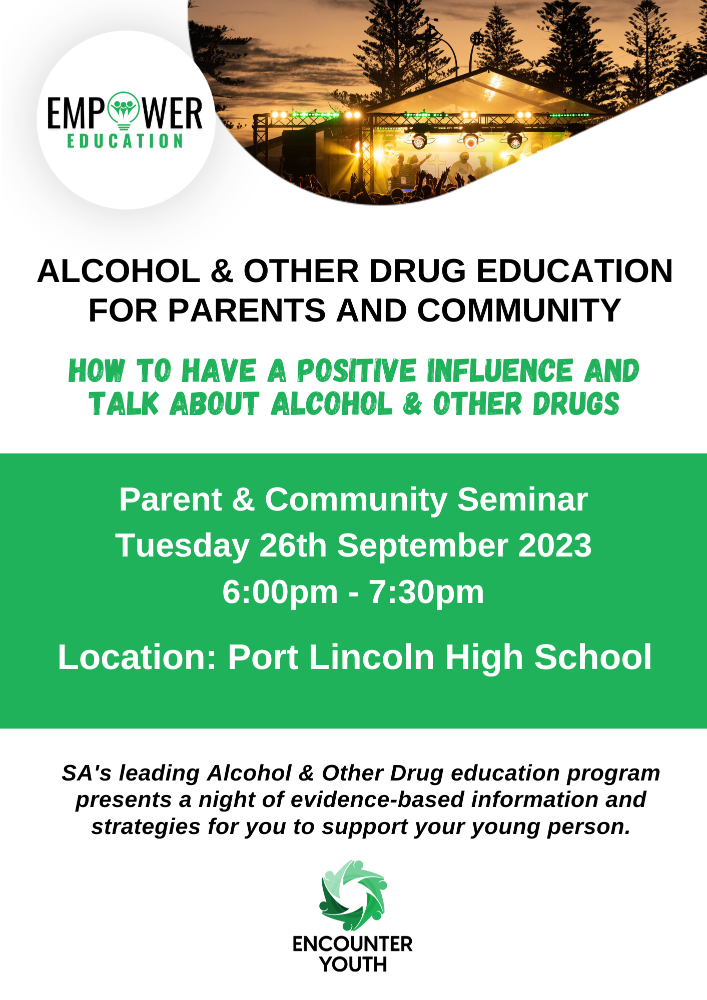 Parents and community members are invited to attend this free seminar at PLHS next Tuesday evening – please contact the school to register your attendance.