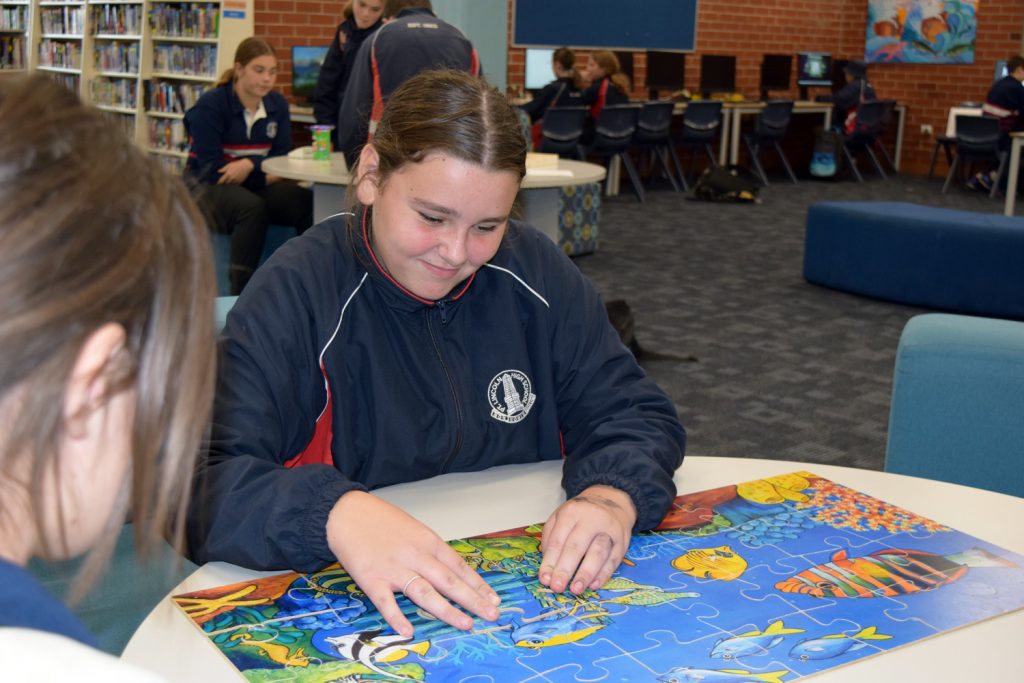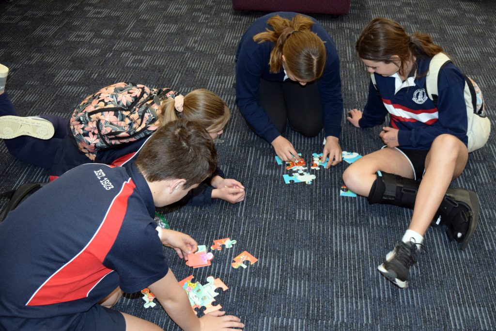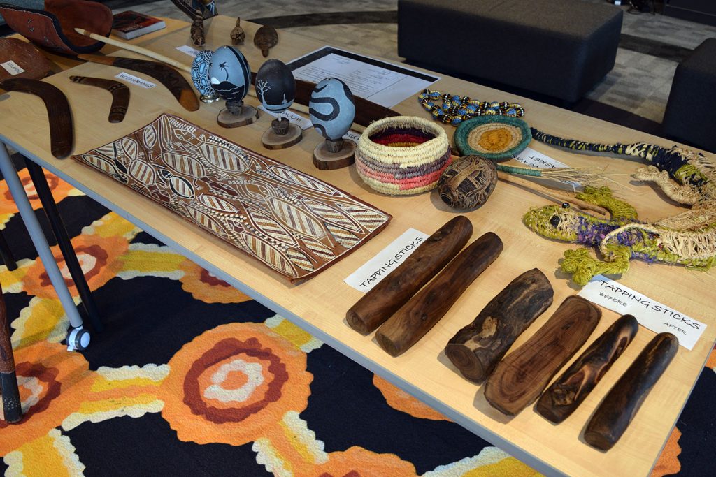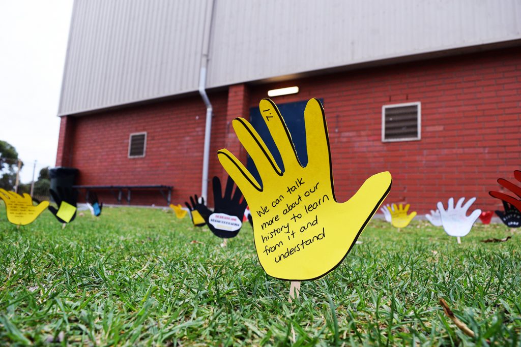 The images below depict staff and students participating in a host of educational, thought-provoking and enjoyable activities, ranging from a display of Indigenous artefacts in the Aboriginal Education Room, a longest kick competition, a speed puzzle challenge, a field of hands featuring reconciliation pledges and a viewing of Nunga Screen 2022 at the Nautilus Arts Centre. Furthermore, several informative seminars have been staged during Dharna Group and staff professional development sessions.
