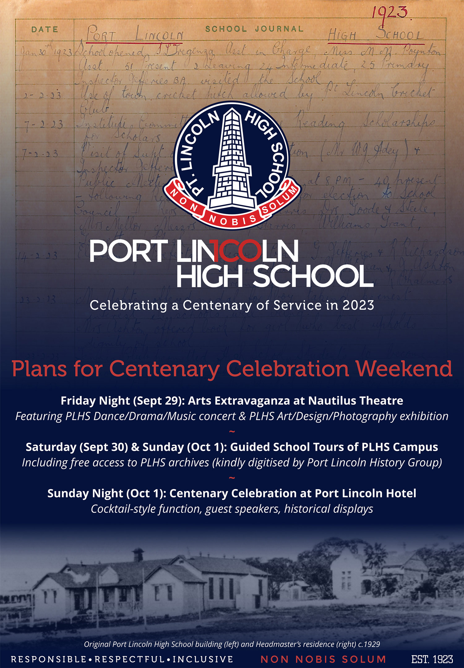 MERCHANDISE: We have procured a range of affordably-priced souvenirs to mark this significant milestone – these are now available for purchase. Former PLHS students/staff can leave a permanent mark on their old school by securing a personalised paver for $50 – well over one hundred engraved pavers have already arrived and are about to installed into our new Centenary Garden (near the Front Office). As pictured above, other souvenir items for sale include tea towels ($12), coffee mugs ($10), travel cups ($10), stemless wine glasses ($10), stubby holders ($8), key rings ($5) and travel candles ($5). We will also have some tasty produce available across our Centenary Celebration Weekend, including $15 packs of smoked barramundi – more info to follow on these items… Merchandise can be pre-ordered via Port Lincoln High School’s page on the Qkr! app, or simply by phoning the school’s Front Office on 8683-6000.