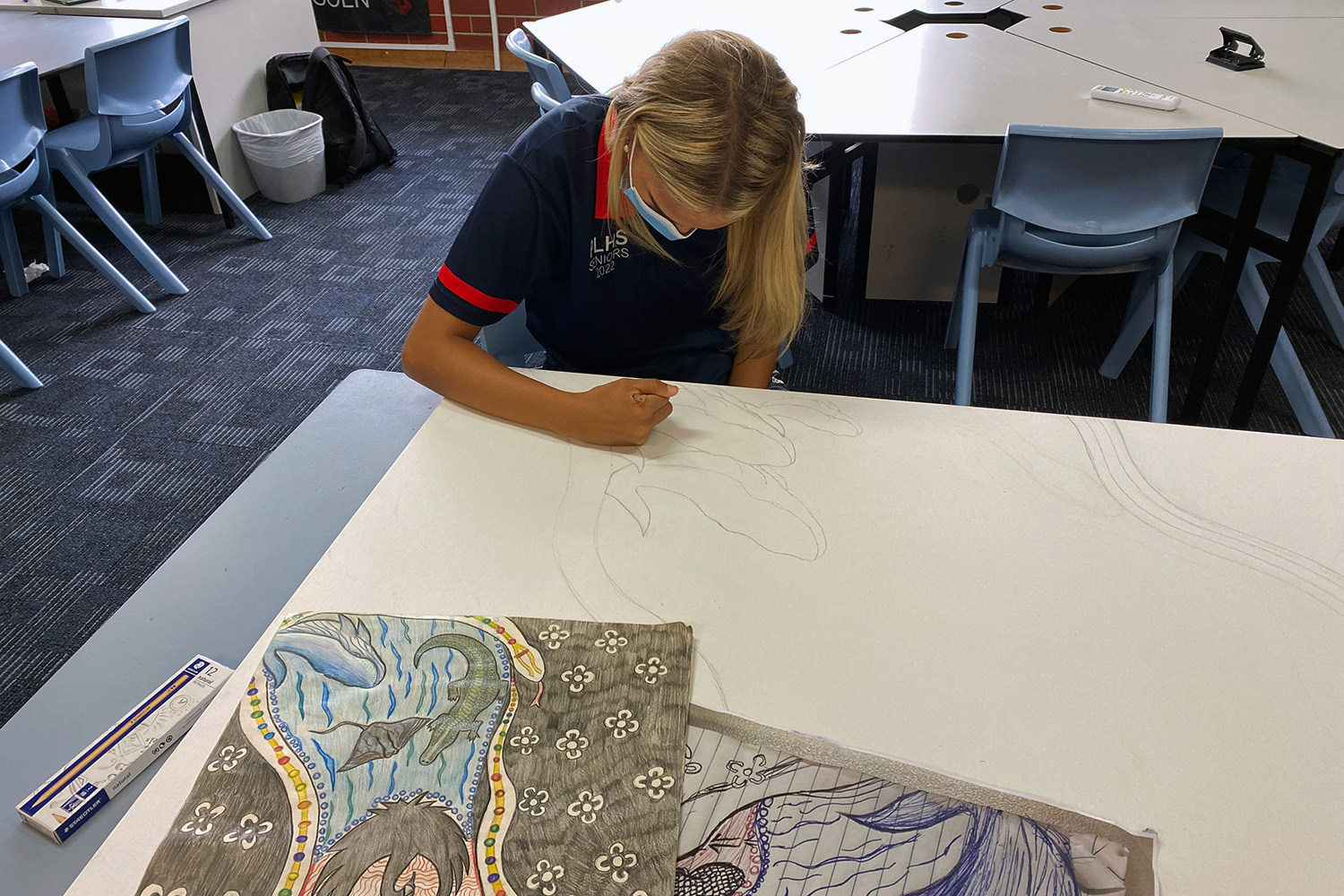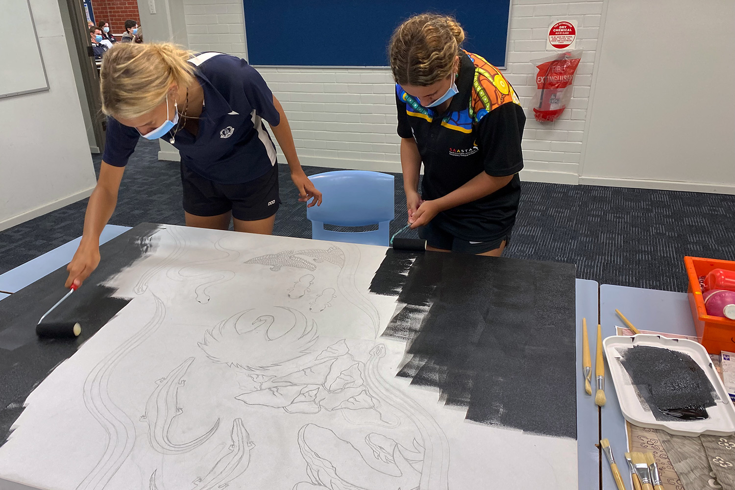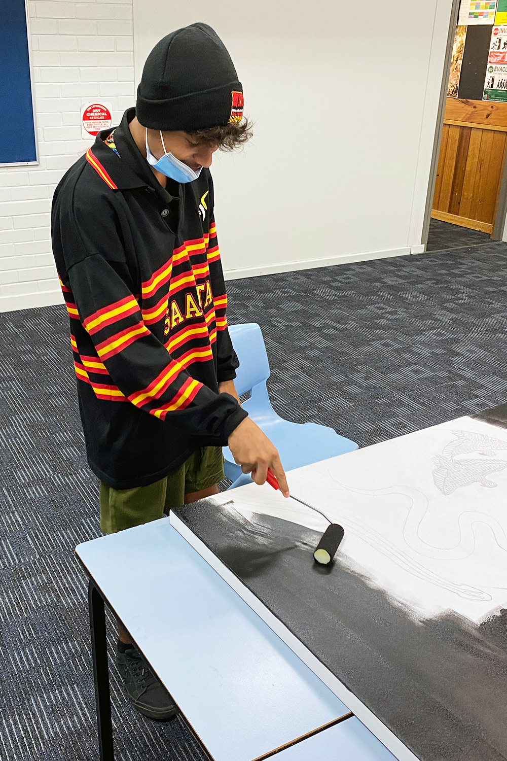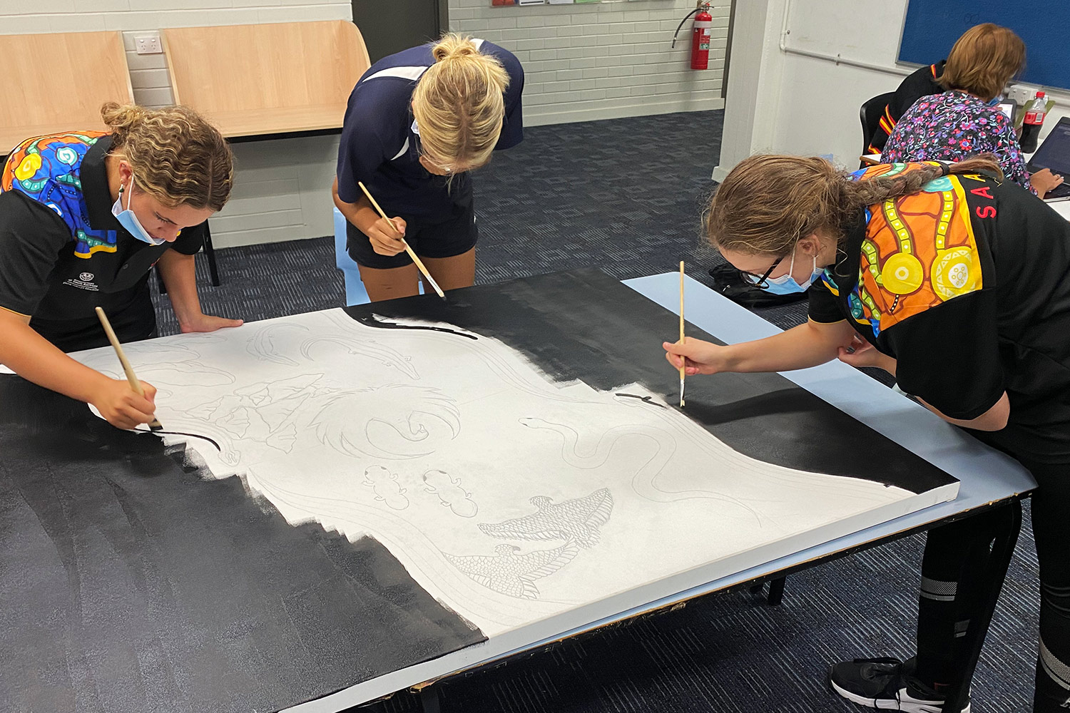 Over the course of Term 1, our Stage 2 SAASTA students have been required to work collaboratively to construct a themed and unique guernsey design to be worn at the 2022 Santos Aboriginal Power Cup – this annual event sees SAASTA academies from around the state compete against each other in Adelaide in an Australian Rules Football carnival.