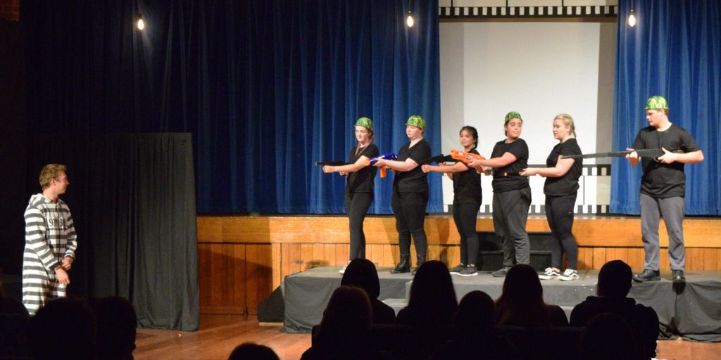 Please enjoy the following images of last night’s performance of “XIV Acts of Crime”, our Senior Drama Production for 2022: