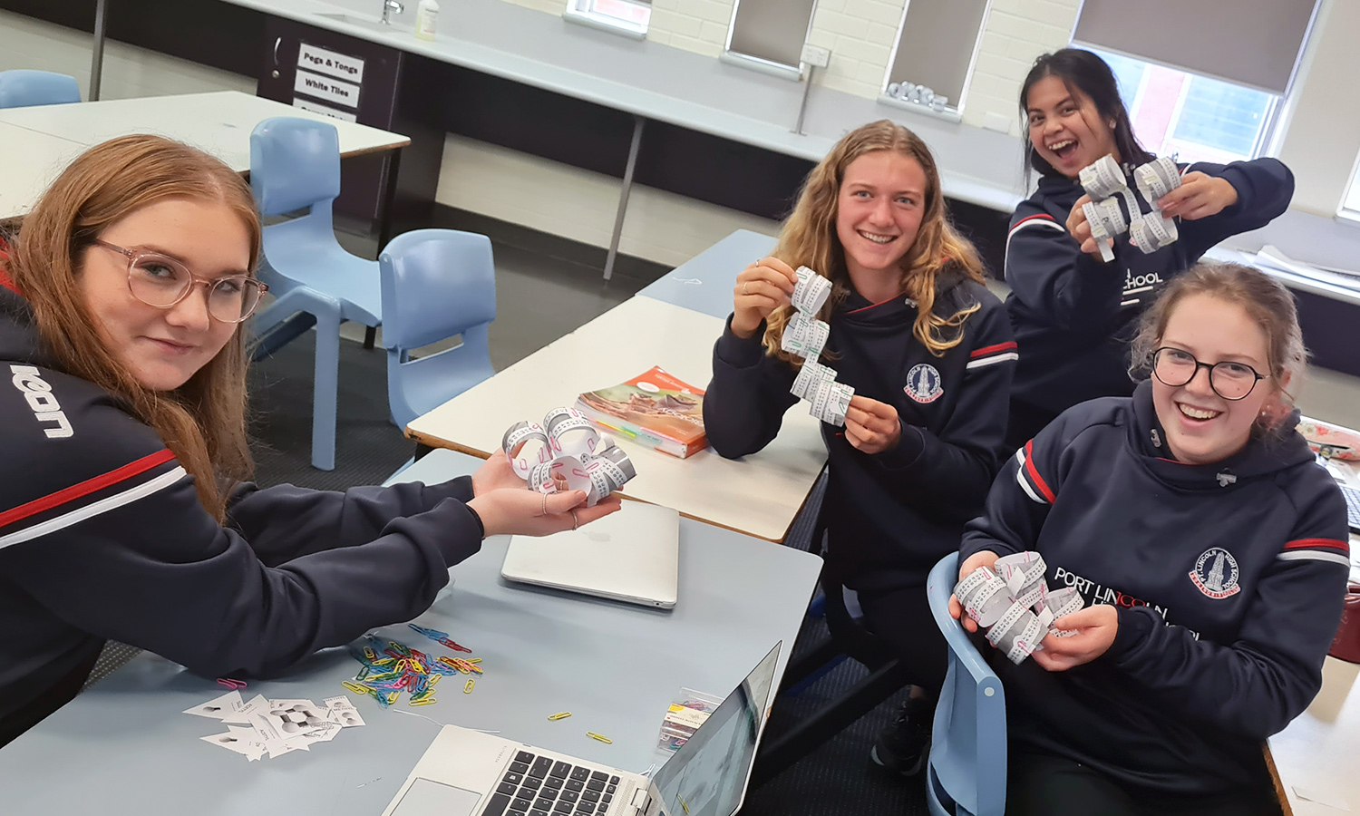 The second sees Biology students Eliza Hartwich, Amelia Stevens, Denise Sadiwa and Ella Campbell constructing protein models in Ms. Tiff Evans’ class.