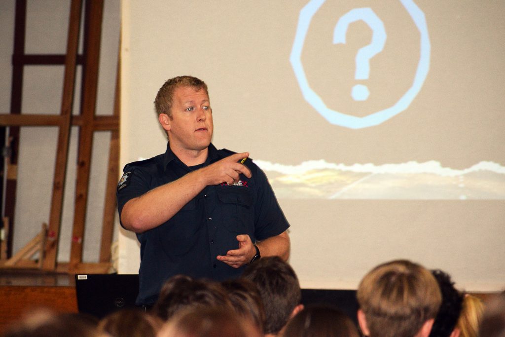Our facilitator, MFS Station Officer Mr Josh “Bolts” Byerlee, was supported in his presentation by road crash survivor Mr Yudhi Mohan-Ram. Members of our local MFS and CFS were also in attendance, with several of our students, including Year 11 Taj Freeman (pictured above centre), participating in some of the scenarios.