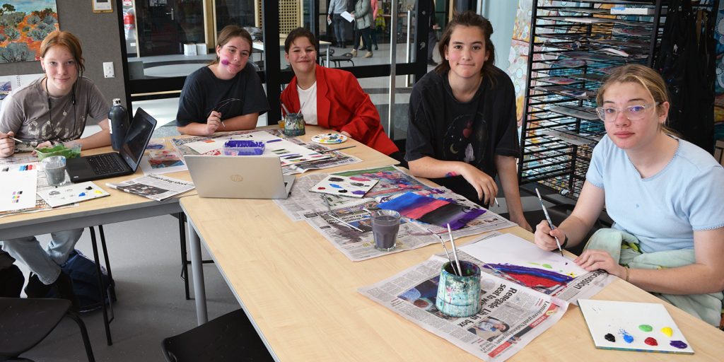 During lunchtime in Ms Wanda Jarvis’ Art room, Shania showed the attending students a range of Pride Flags, before inviting them to paint their own interpretations. As the images here clearly show, our students greatly enjoyed interacting with Shania and expressing themselves through their artwork.
