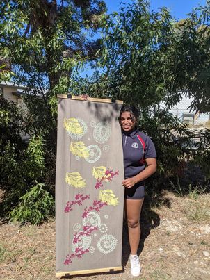 Leightanee Henry is a First Nations Noongar/Wirangu/Yamaji artist living in Port Lincoln, South Australia. Leightanee is currently completing year 10 at Port Lincoln High School. The title of the artwork is ‘Gadiya’, a Wirangu word meaning ‘friend’.