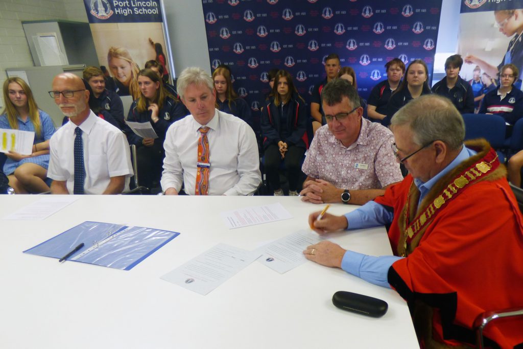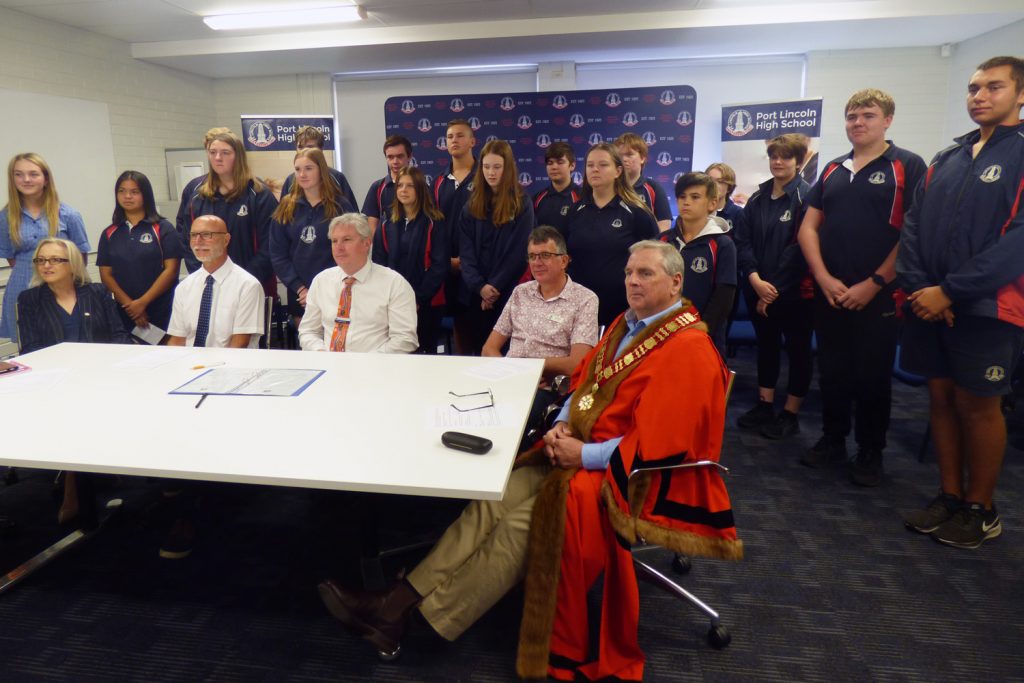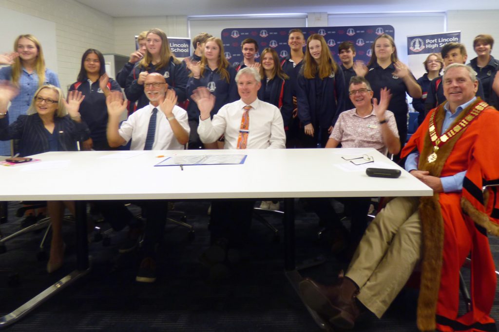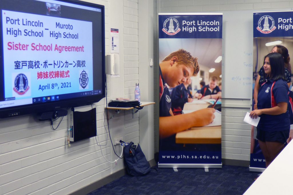 Accordingly, representatives from PLHS and the broader community signed a sister school agreement with Muroto High School in a formal ceremony (linked to Muroto HS via Zoom) on Thursday April 8th. Our copy of the document was signed by Ms. Rowena Fox (Education Director, Department for Education), Mr. Todd George (Principal, PLHS), Mr. Brian Gabb (Chairperson, PLHS Governing Council), Miss Ursula Clarke and Mr. Ned Moxey (Principal Student Leaders, PLHS), Mr. Brad Flaherty (Mayor, City of Port Lincoln) and Mr. Rob Watson (Chairperson, Port Lincoln Muroto Friendship Group).