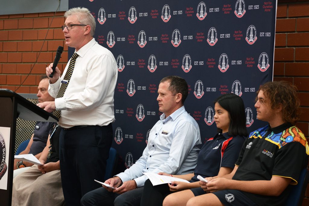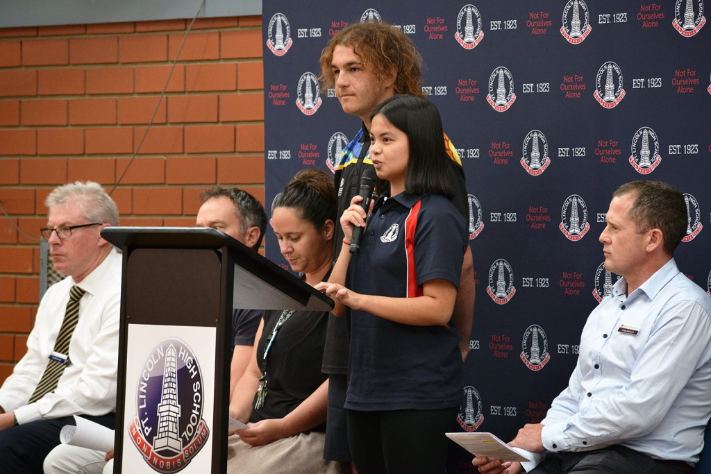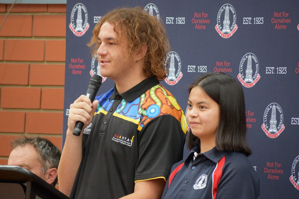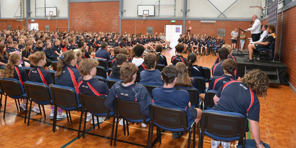 The proceedings was compered by Deputy Principal Mr. Craig Akehurst, who officially welcomed staff and students to our first formal gathering for the year. An Acknowledgement of Country was delivered by Year 11 student Dre Vlassco, before Principal Mr Todd George delivered a wide-ranging Principal’s Address. As well as assisting with the badge/certificate ceremony, our 2023 Principal Student Leaders – Nathaniel Hirschausen-Burk and Denise Sadiwa – delivered a thoughtful speech to the student body.