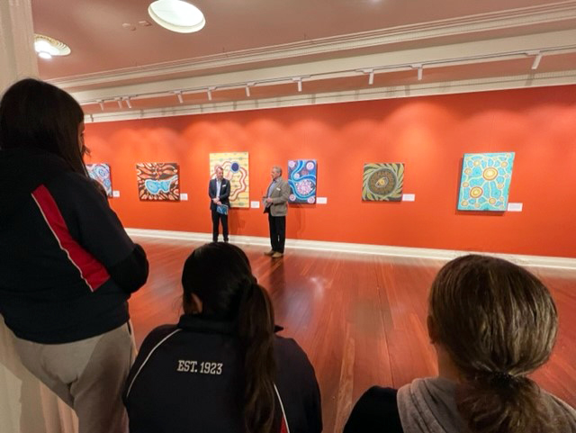 The dazzling collection of original collaborative paintings – entitled “Reflect Respect Celebrate Community” – was officially opened by the Mayor of Port Lincoln Mr. Brad Flaherty and City of Port Lincoln CEO Mr. Matthew Morgan. PLHS Art teacher Ms. Wanda Jarvis and Year 9 student Robert Roderick Varcoe also spoke at the opening. This initiative has been supported by the City of Port Lincoln and the Reconciliation Action Plan Working Party.
