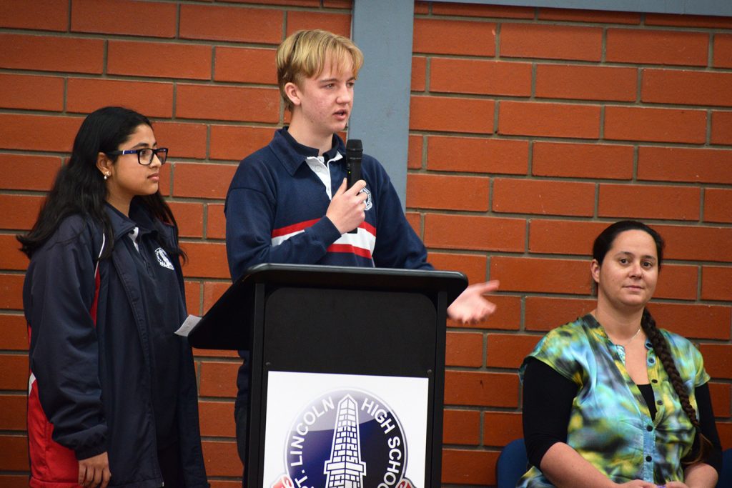 The ceremony was conducted by Deputy Principal Mrs. Lesley Warren and opened with an Acknowledgement of Country from SRC reps Seth Kayser (Year 11) and Toby Harris (Year 7). Inspired by an Eleanor Roosevelt quote, PLHS Principal Mr. Todd George provided a thoughtful address to the students about the fundamental differences between great minds, average minds and small minds.