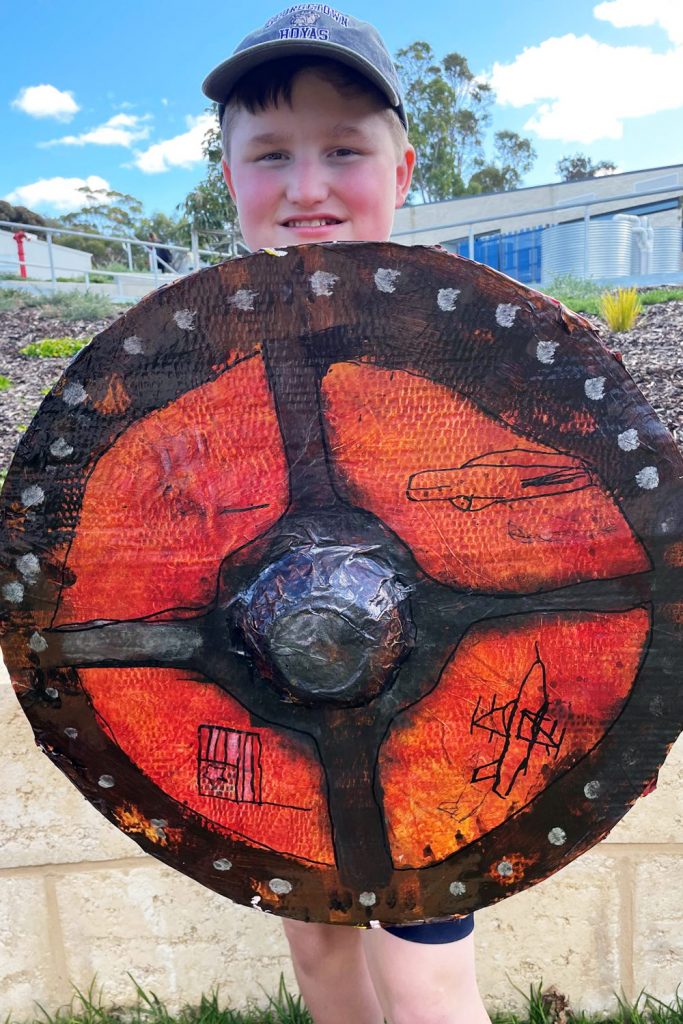 During Term 1, Room 22 students put their creative skills to use by connecting Mrs Beard’s HASS lessons with Art, and researching, constructing and embellishing Viking shields.