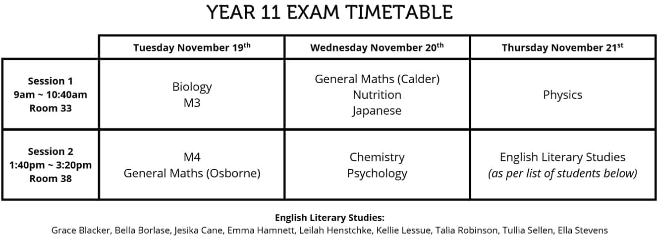 * students need to arrive (on the Senior Floor) at least 10 minutes before their exam is due to begin